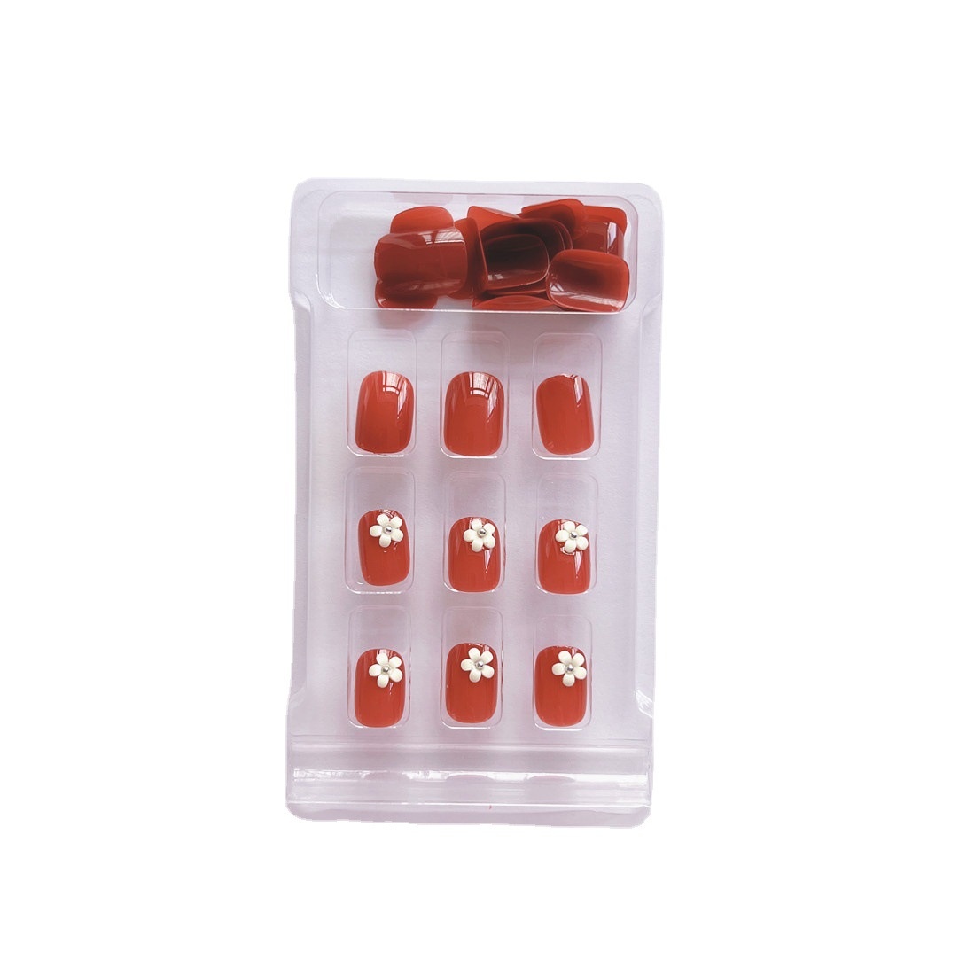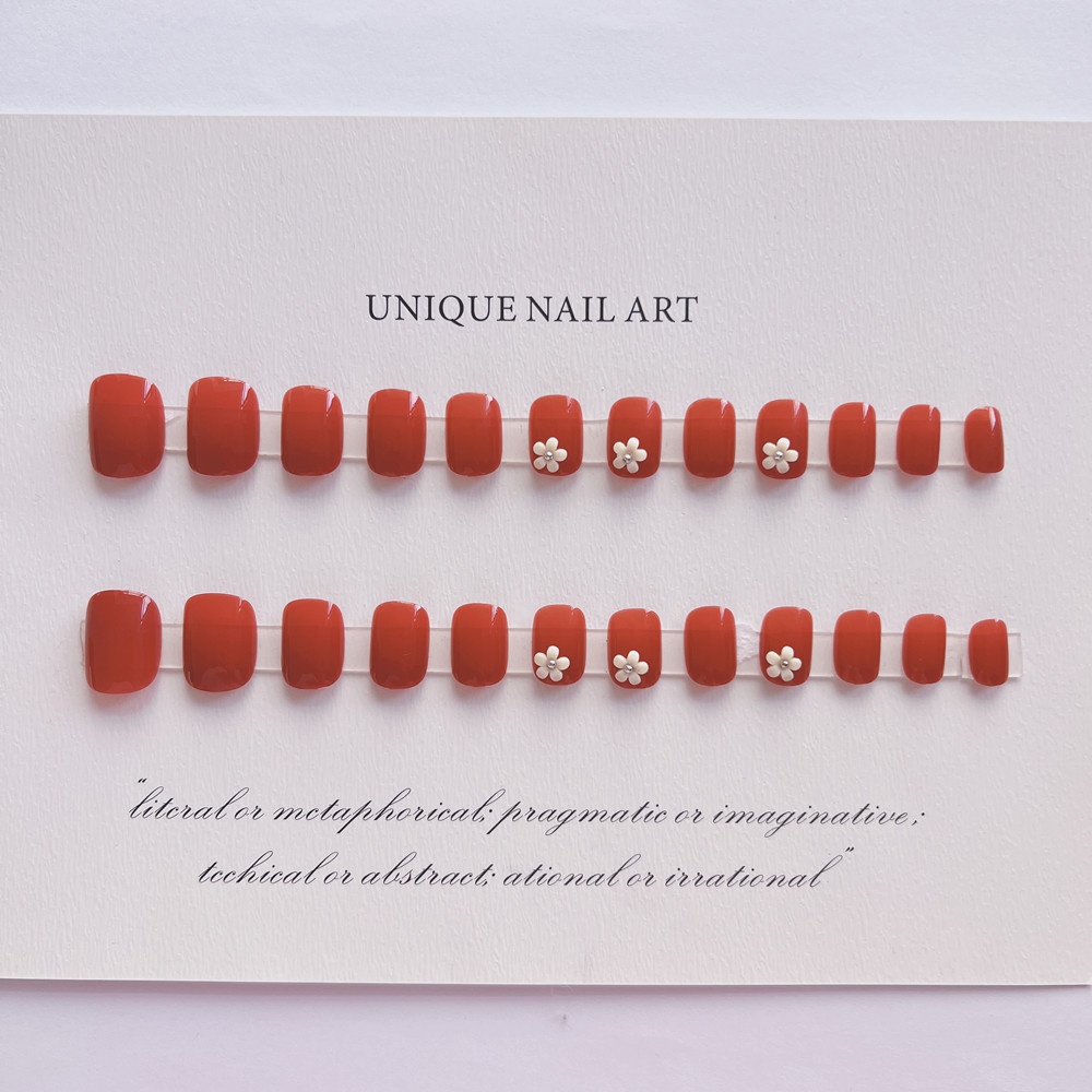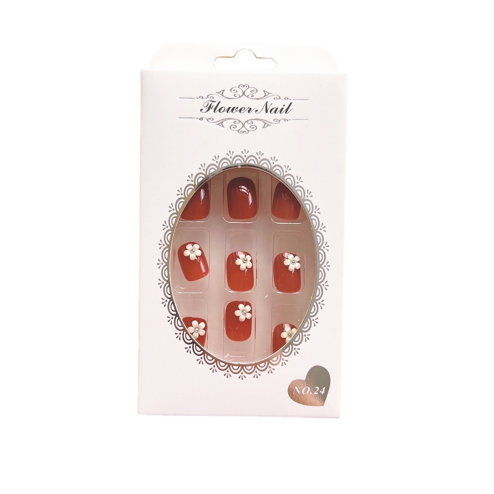 24 Pieces In ABox Short Grapefruit Red Small Flowers Wearable Detachable Manicure False Nails Finished Nails