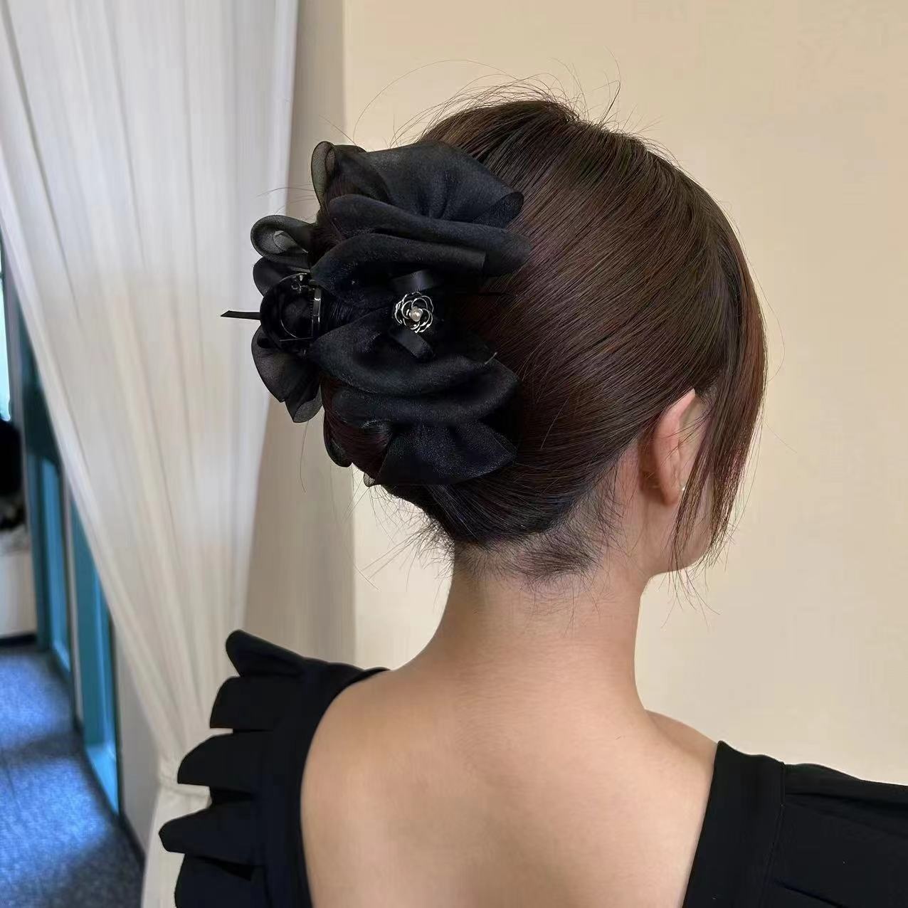 Black Light Luxury Rose Flower Hairpin Female Back Of The Head High-end ABDouble-sided Hair Clip Hairpin Temperament Shark Clip