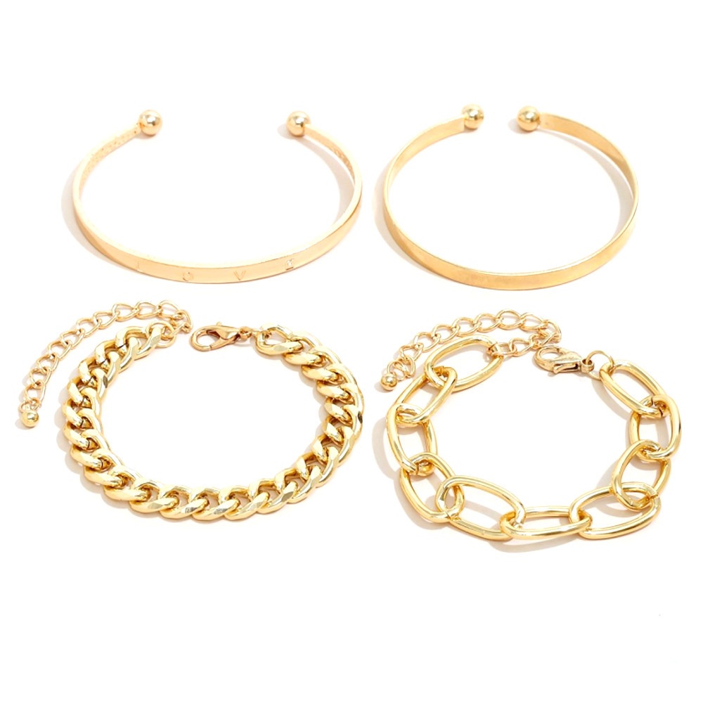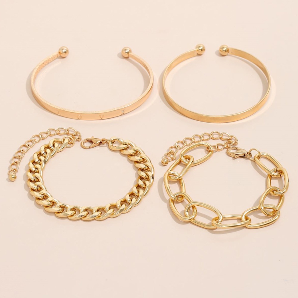Personalized Chain Creative Polished LOVEOpen Bangle,Hollow Bracelet,4-piece Set