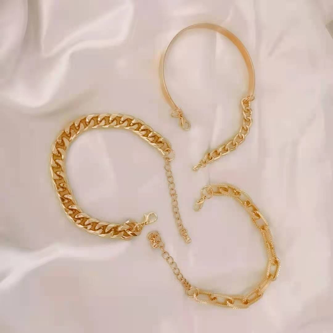 Hip-hop Punk Style Bracelet,Gold-plated Jewelry,Metal Chain Bracelet Set