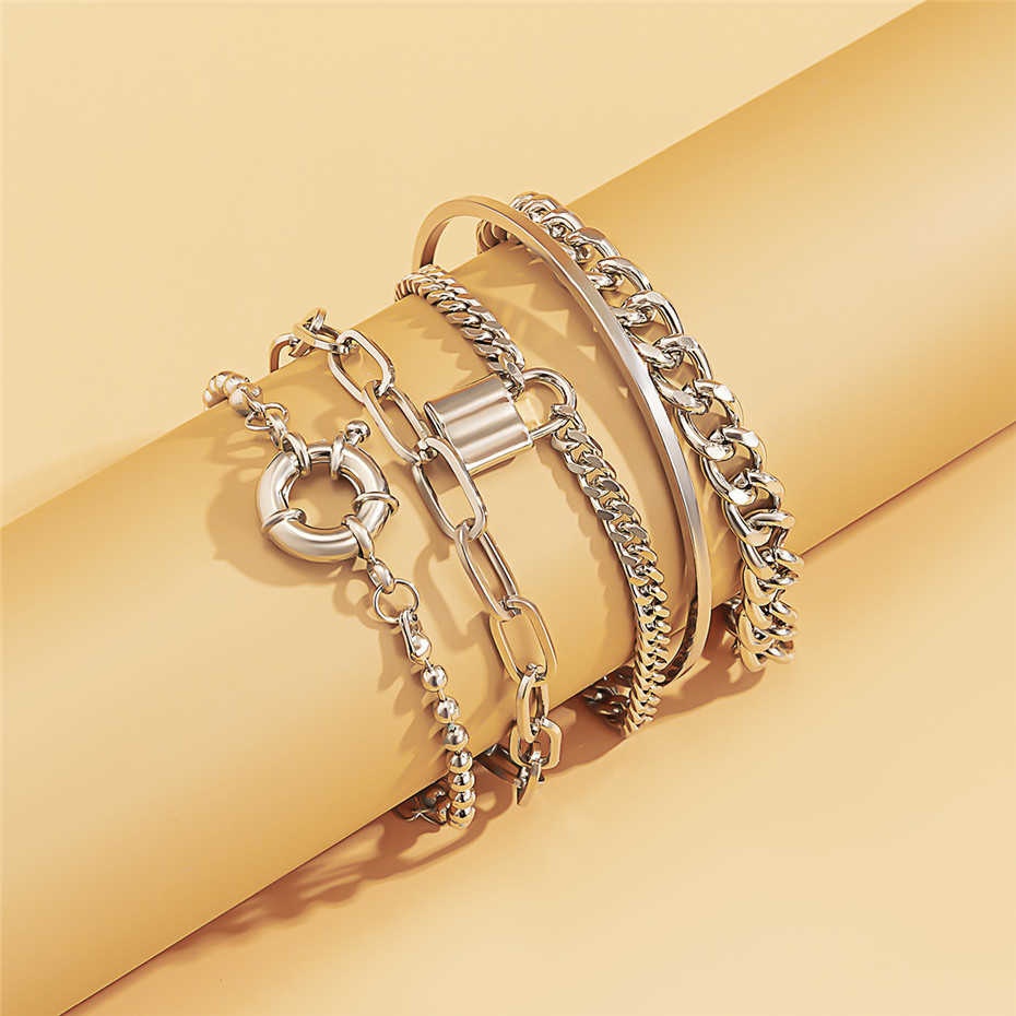 Jewelry Hip-hop Style Lock Bracelets Element Geometric Round Buckle Set Bracelet4-piece Set
