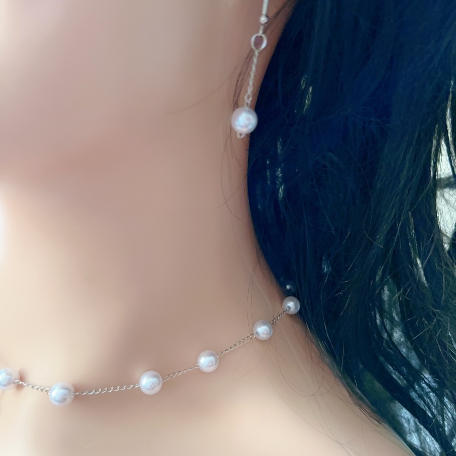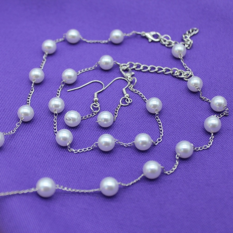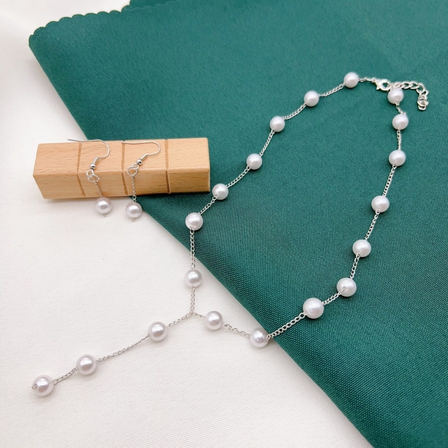 Simple Elegant Pearl Necklace,Earrings,And Bracelet Set,Accessory