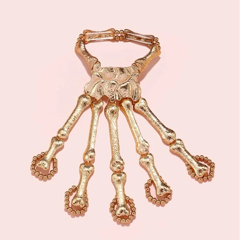 Exaggerated Metal Skeleton Skull Bracelet Ghost Claw Finger Bracelet Pearl Style