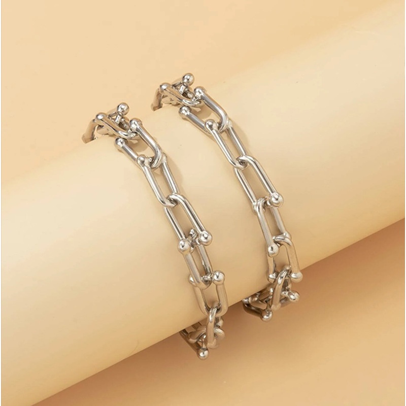 Fashion Simple Personalized Geometric U-shaped Buckle Double-layer Bracelet,Accessory