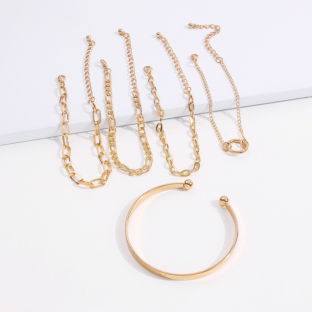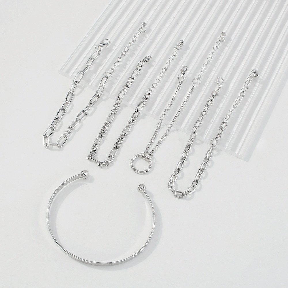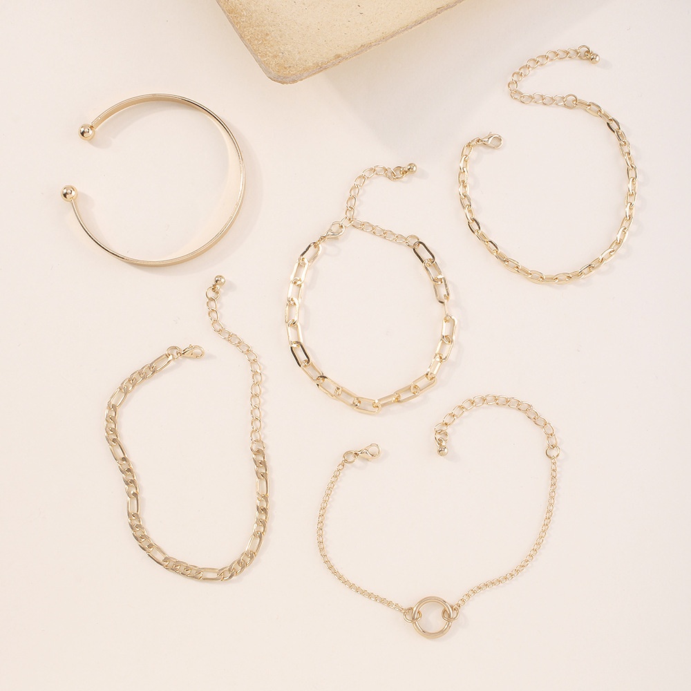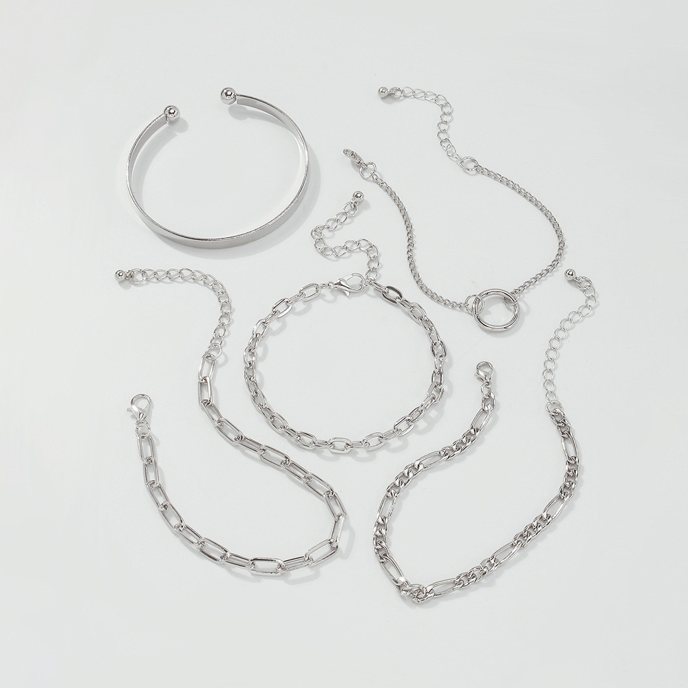 Punk Hip-hop Chain Round Ringy Bracelet,5-piece Set