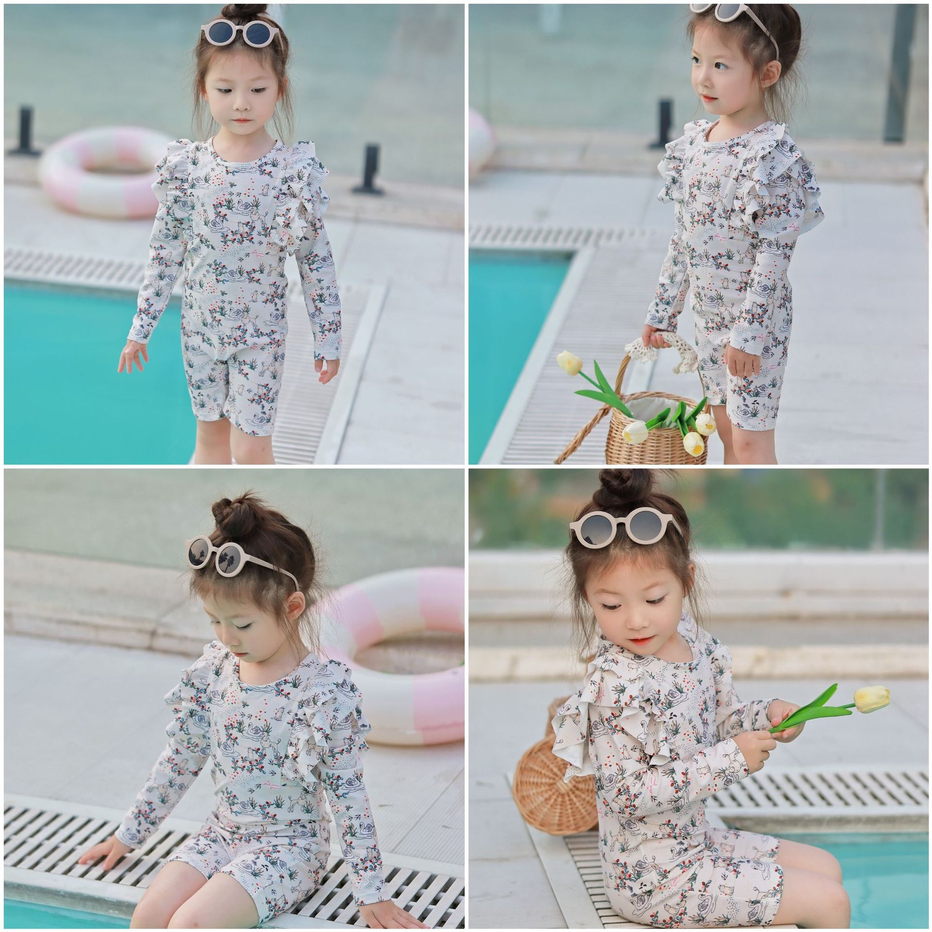 Girls Long-sleeved One-piece Sun Protection Swimsuit Summer Princess Baby Swimsuit Ks Girl Swimsuit
