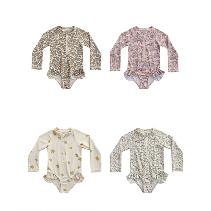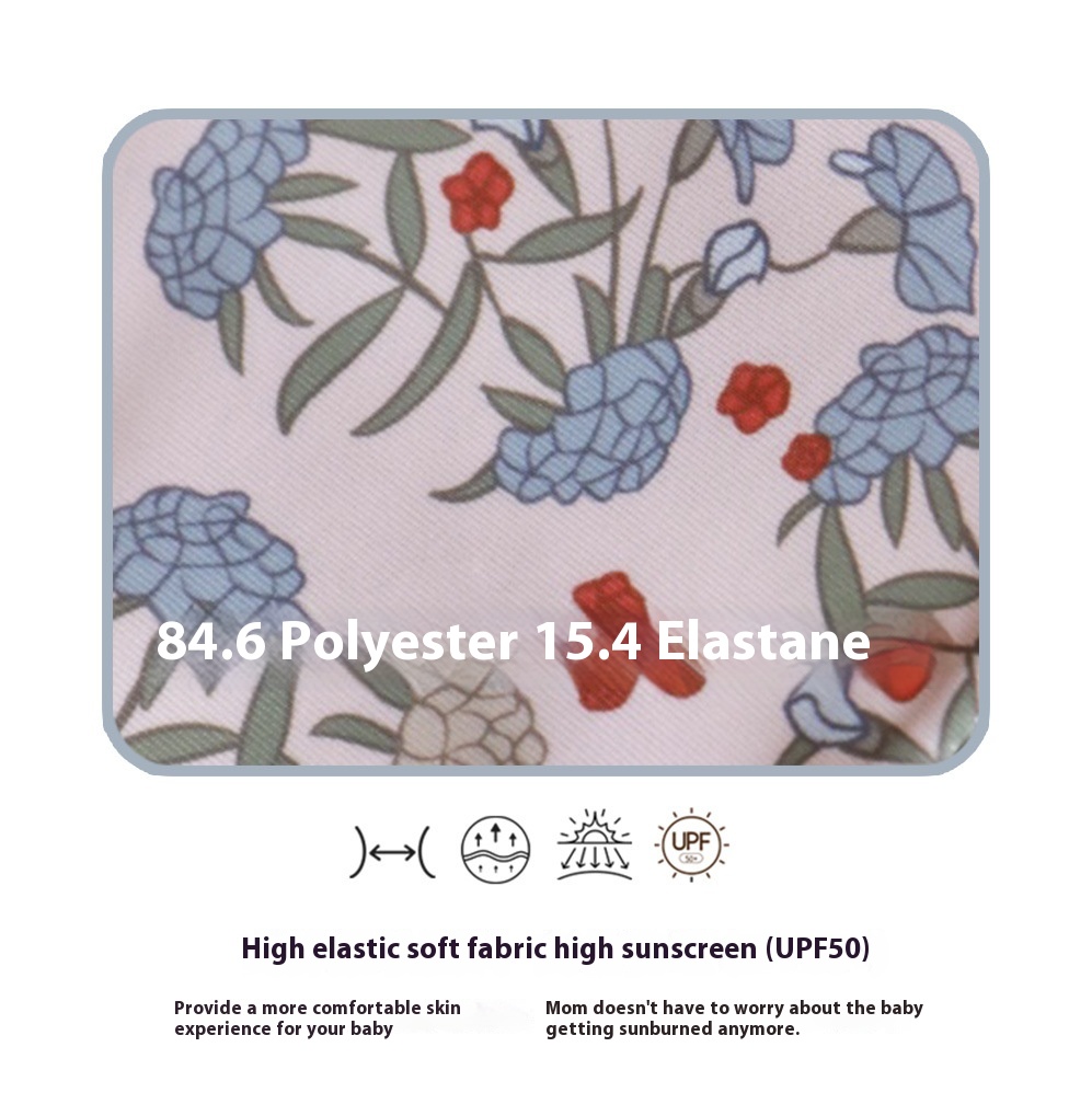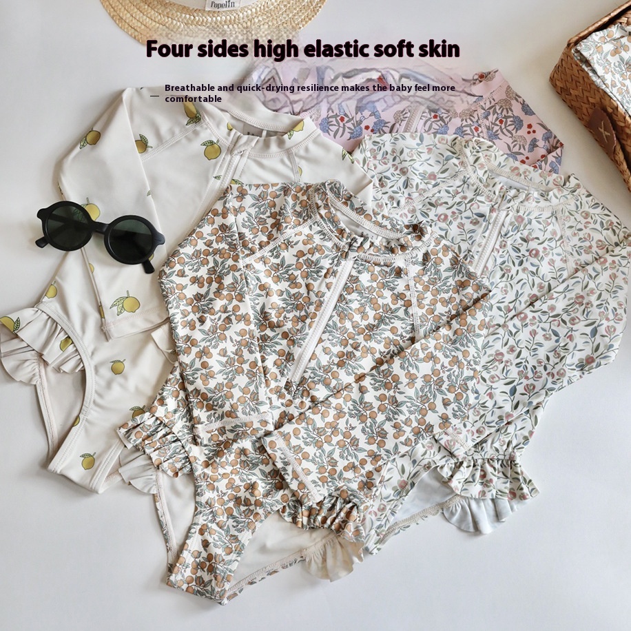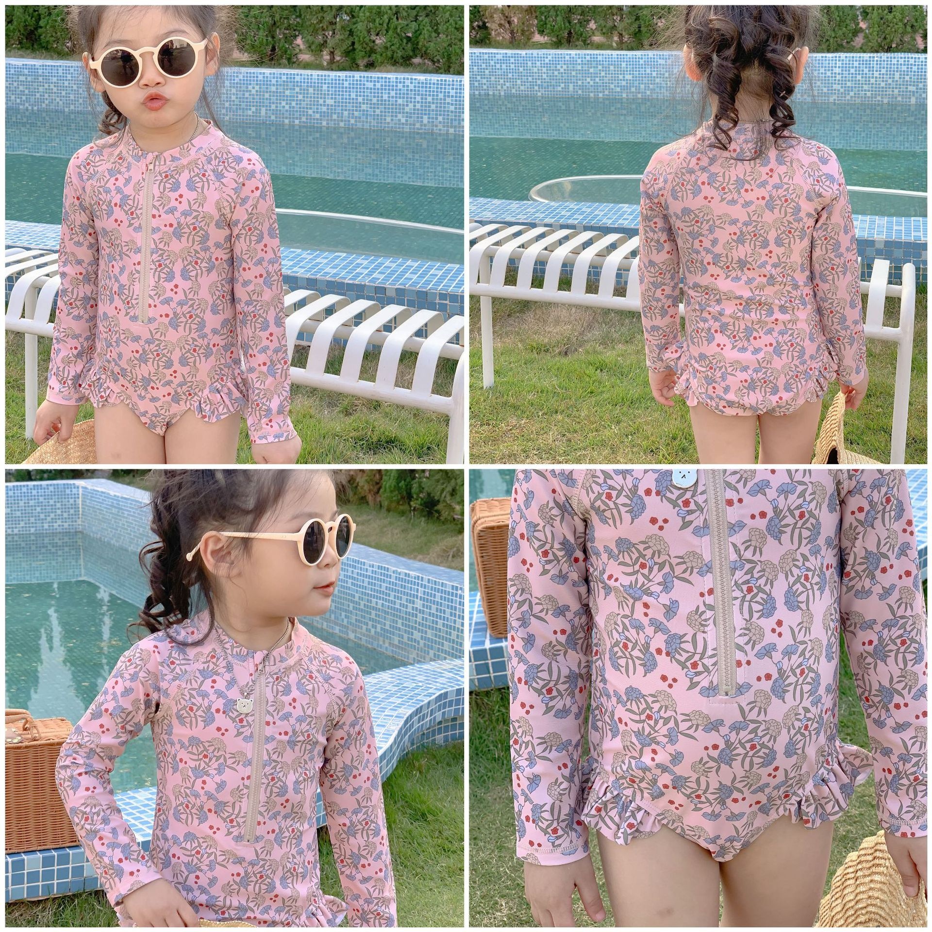 Girls Style Floral Long-sleeved One-piece Swimsuit Baby Sunscreen Quick-drying Swimsuit Children's Cute Hot Spring Swimsuit
