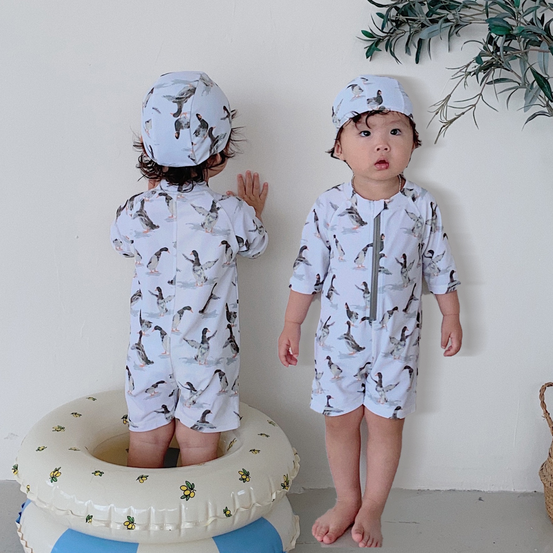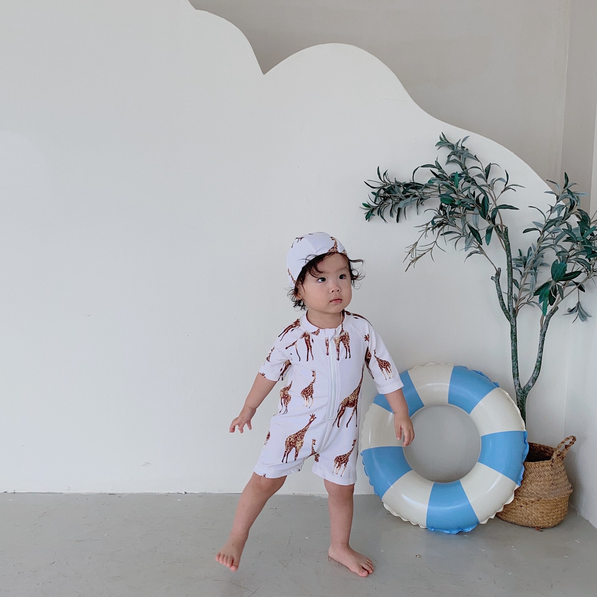 Children's Zipper One-piece Swimsuit Swimming Cap Boy Baby Mb Giraffe Boxer Swimsuit Conservative Swimsuit