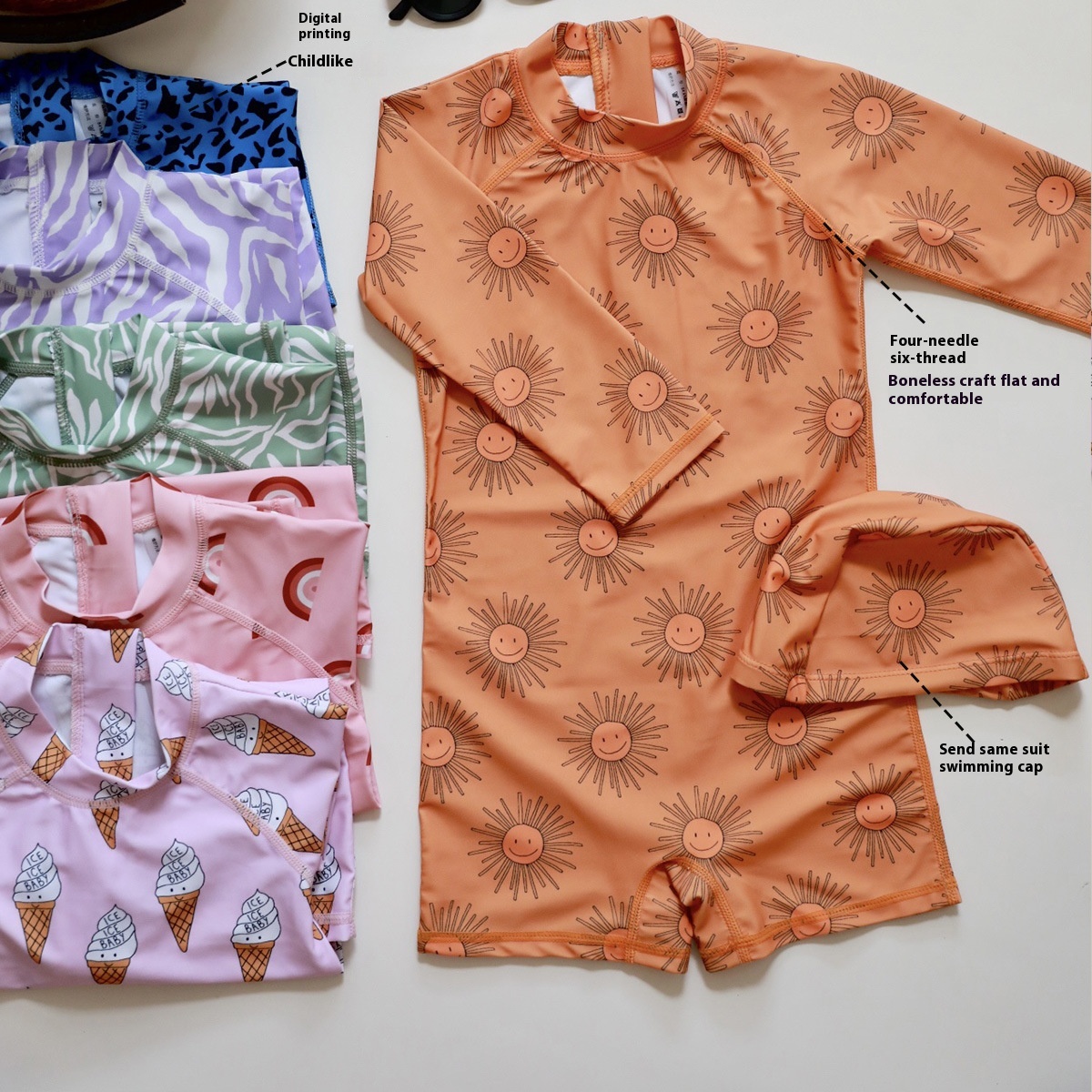 Children's One-piece Hot Spring Swimsuit Boys And Girls Baby Summer Sunscreen Quick-drying Swimming Clothes Girls Swimsuit