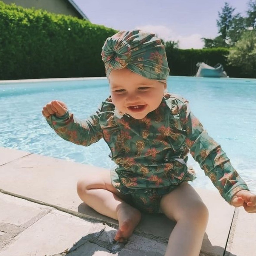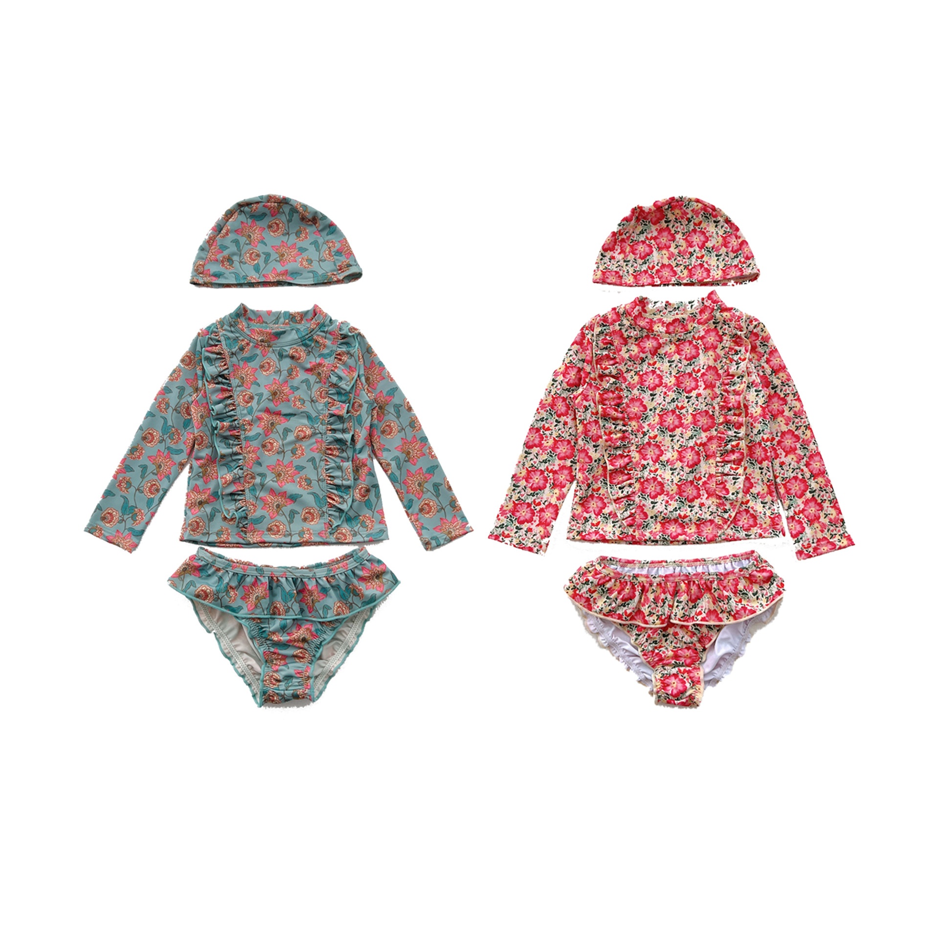 Girls Cute Small Floral Long-sleeved Sun Protection Swimsuit Quick-drying Hot Spring Children's Swimsuit Girls Baby Split
