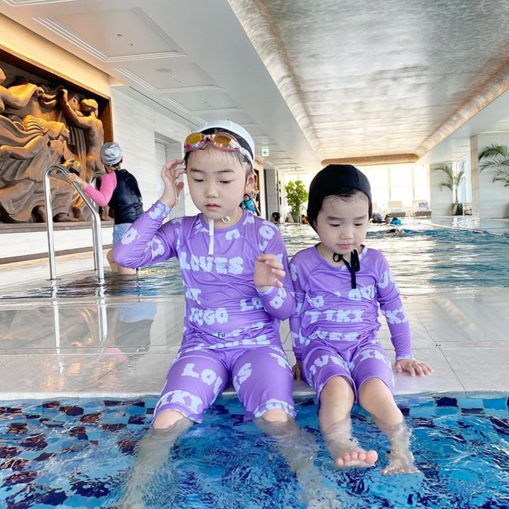 Summer Girls Long-sleeved One-piece Swimsuit Style Children's Quick-drying Sunscreen Conservative Swimsuit Baby Swimsuit