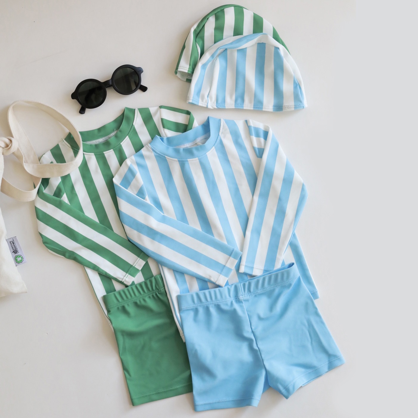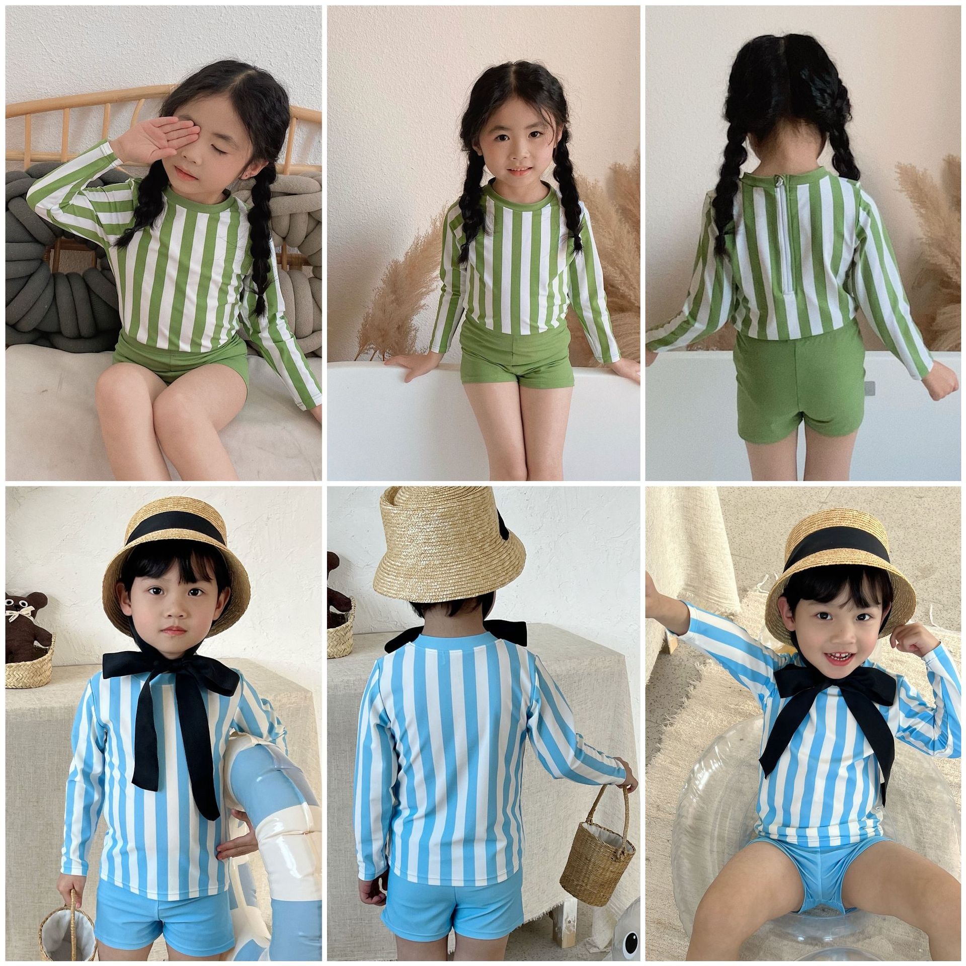 Children's Style Split Striped Swimsuit Baby Long-sleeved Quick-drying Sunscreen Swimsuit Boys And Girls Conservative Swimsuit