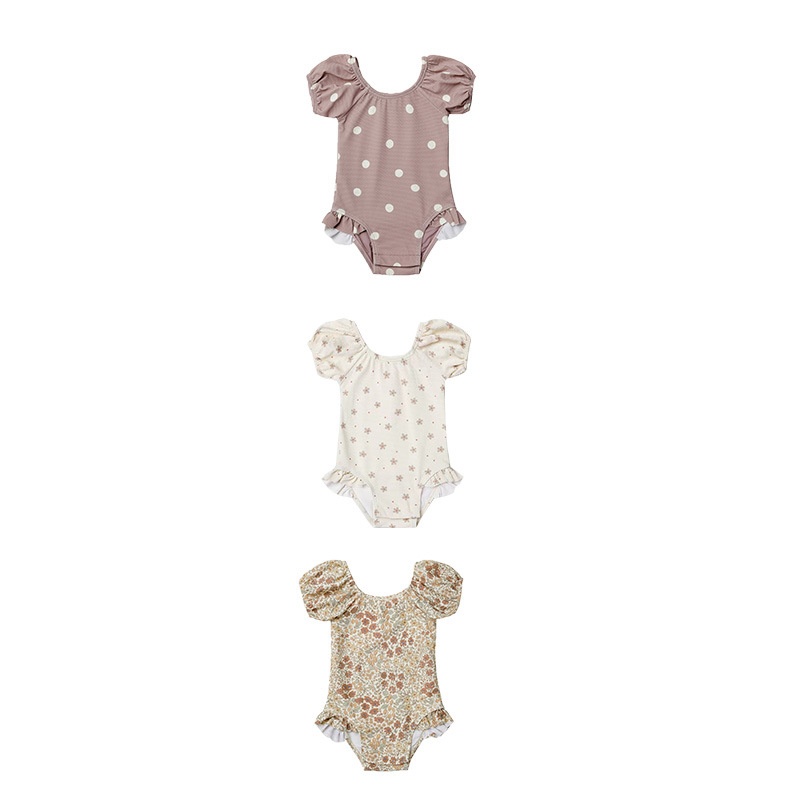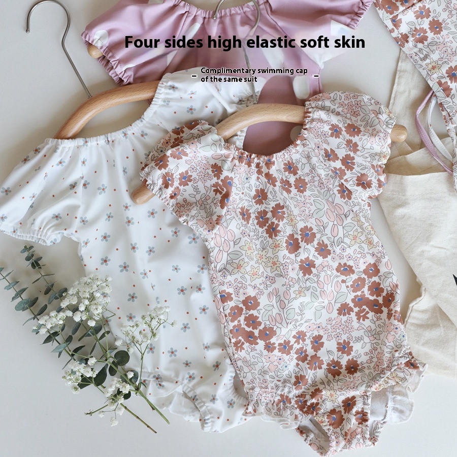 Girls Polyester Floral Swimsuit Quick Dry Baby Foreign Trade Swimsuit Cute Polka Dot Hot Spring Vacation One-Piece Swimsuit