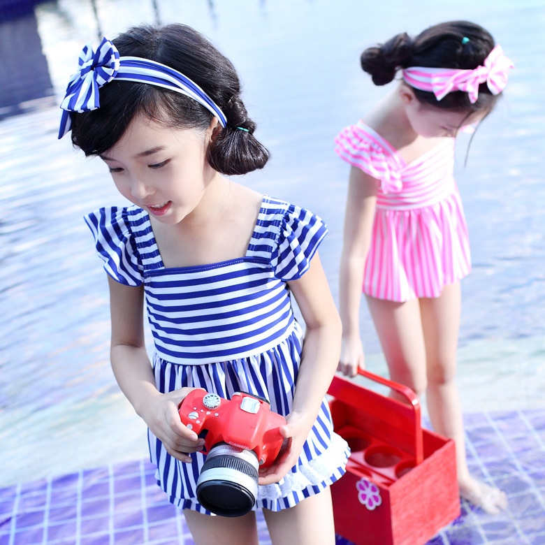 Style Children's Swimsuit Girls Toddler Baby Split Navy Striped Skirt Lace Swimsuit Infant Swim