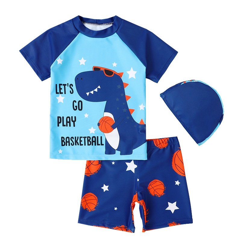 Boys And Children's Cute Dinosaur Children's Swimsuit Split Short-sleeved Sunscreen Quick-drying Swimming Cap Swimsuit Suit Style