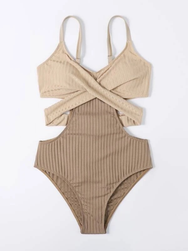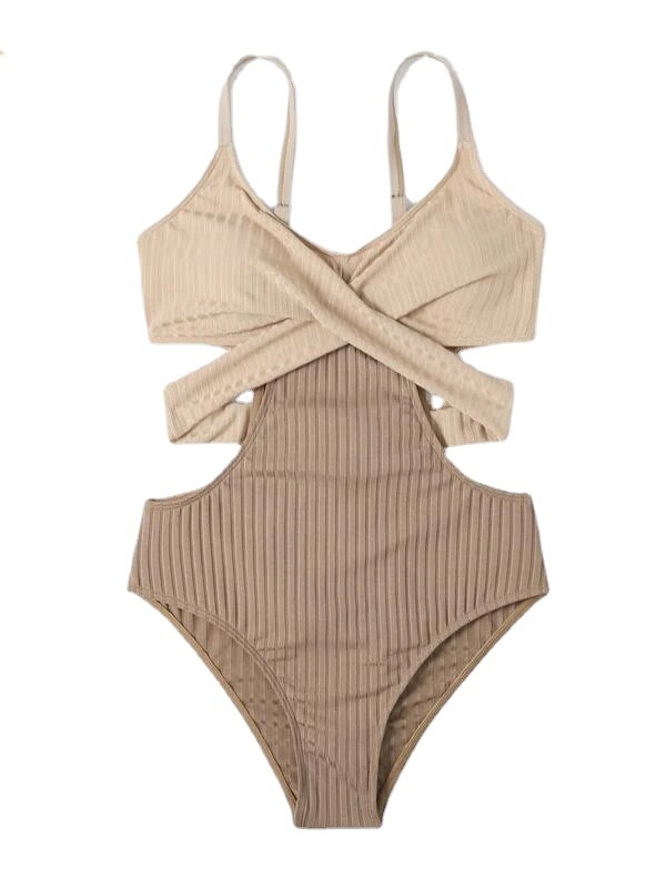 European And American Women's One-piece Bikini Solid Color Special Fabric Fashion Lace-up Swimsuit Female