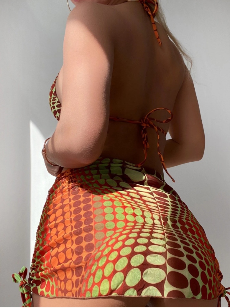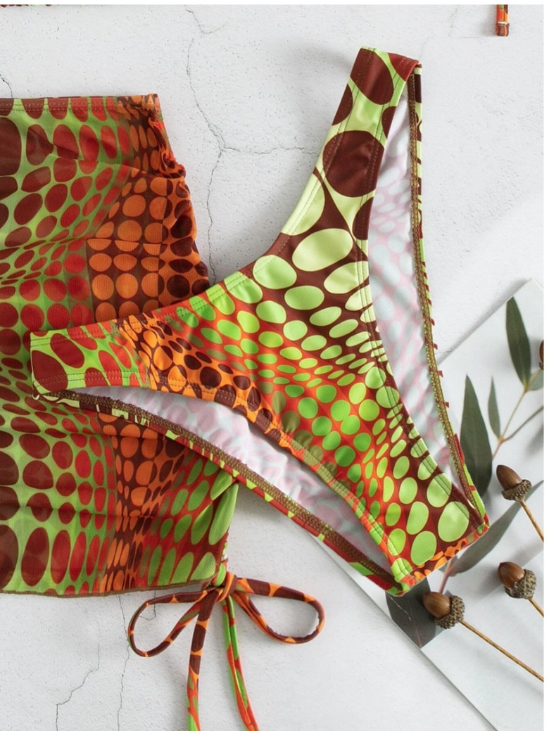 European And American Split Bikini Backless Lace-up Classical Printed Mesh Skirt Three-piece Suit Foreign Trade Swimsuit