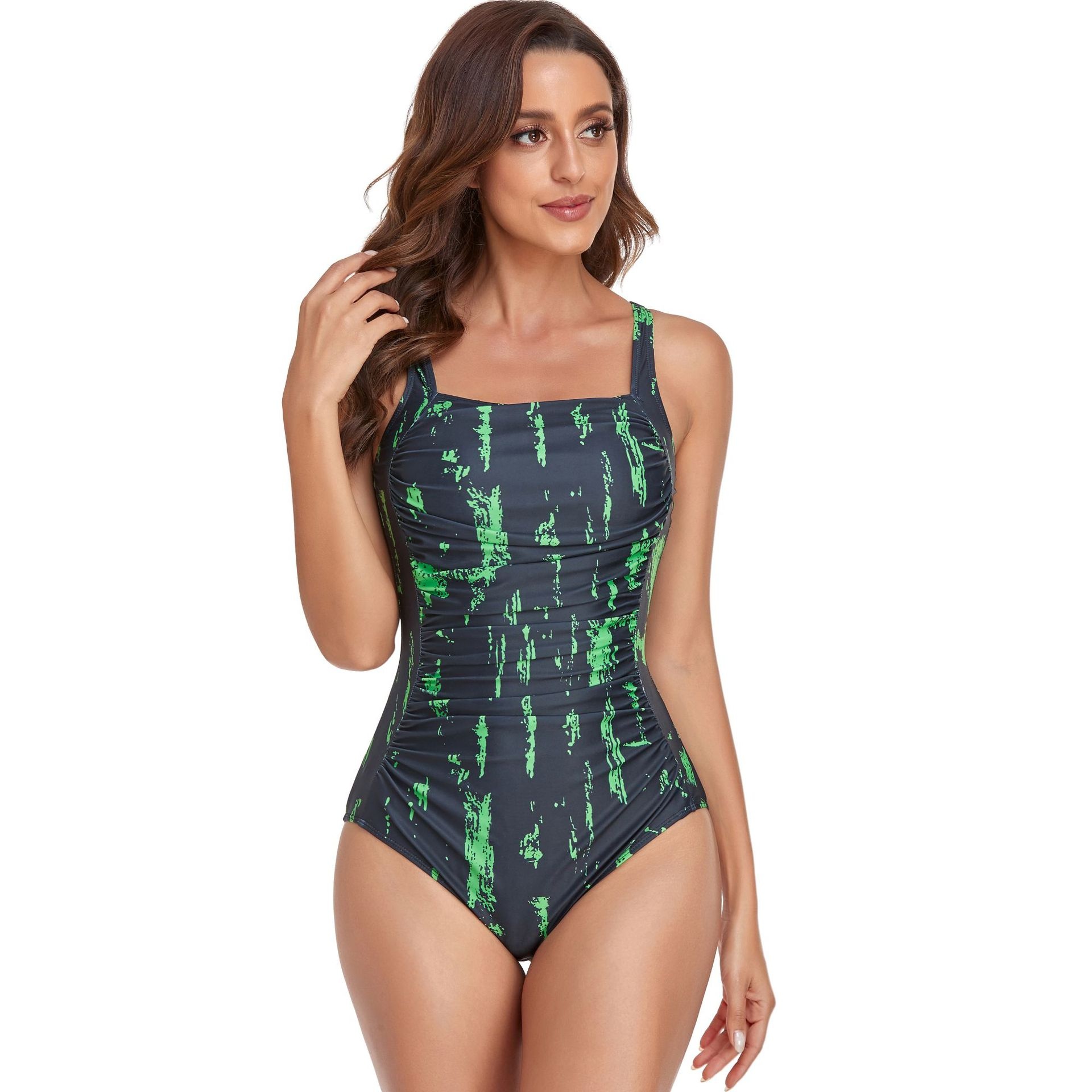 European And American One-piece Bikini Tight Sling Briefs Sexy Tie-dye Printed Swimsuit For Women