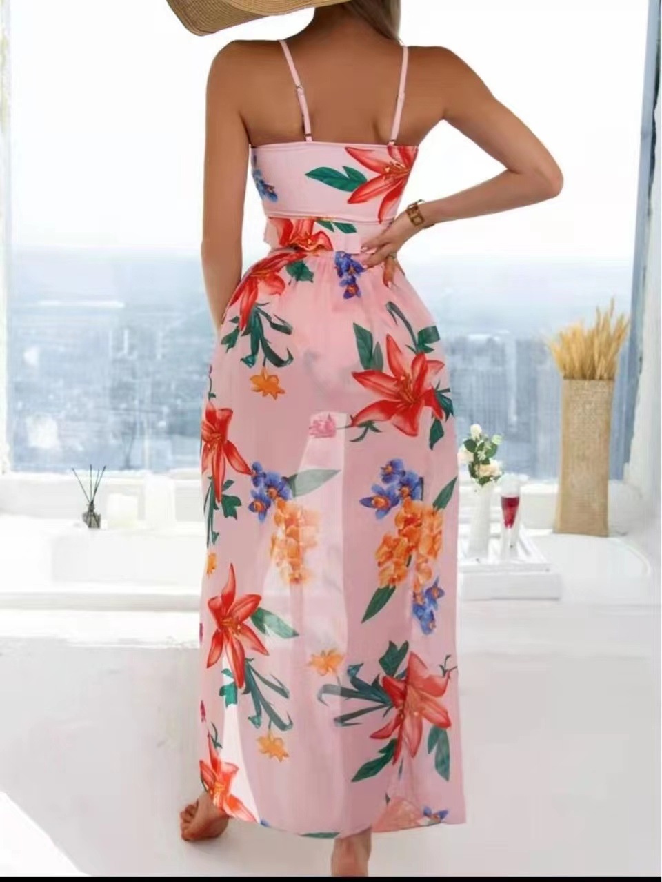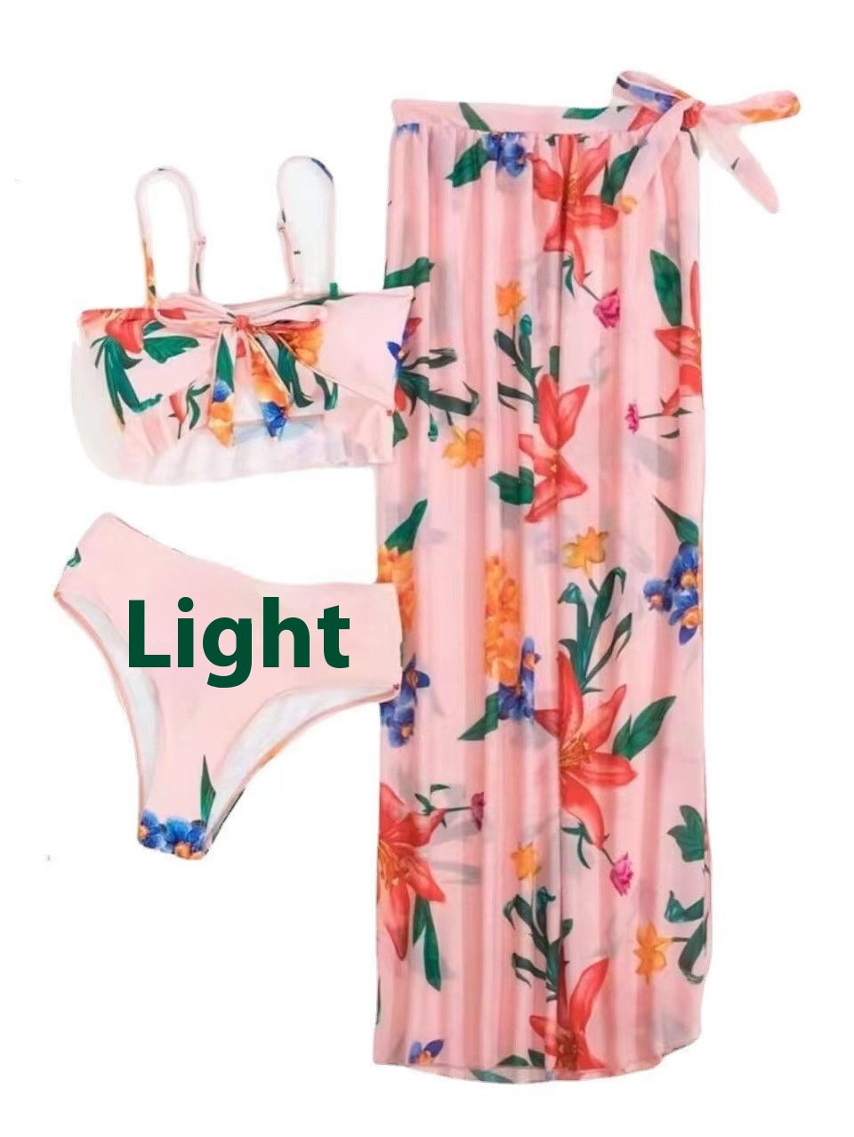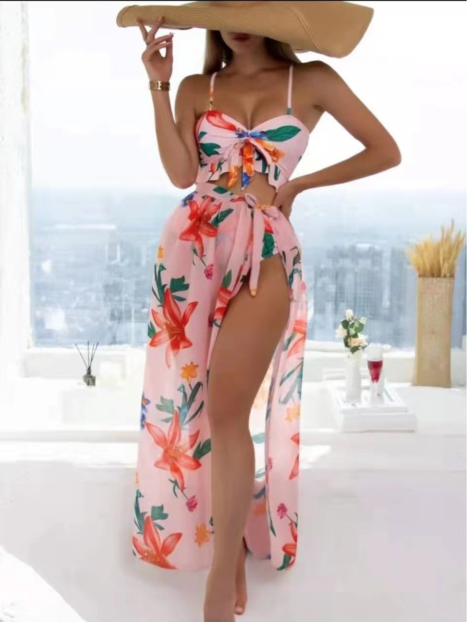 European And American Three-piece Mesh Slit Fashion Skirt Digital Printing Beach Sun Protection Swimsuit