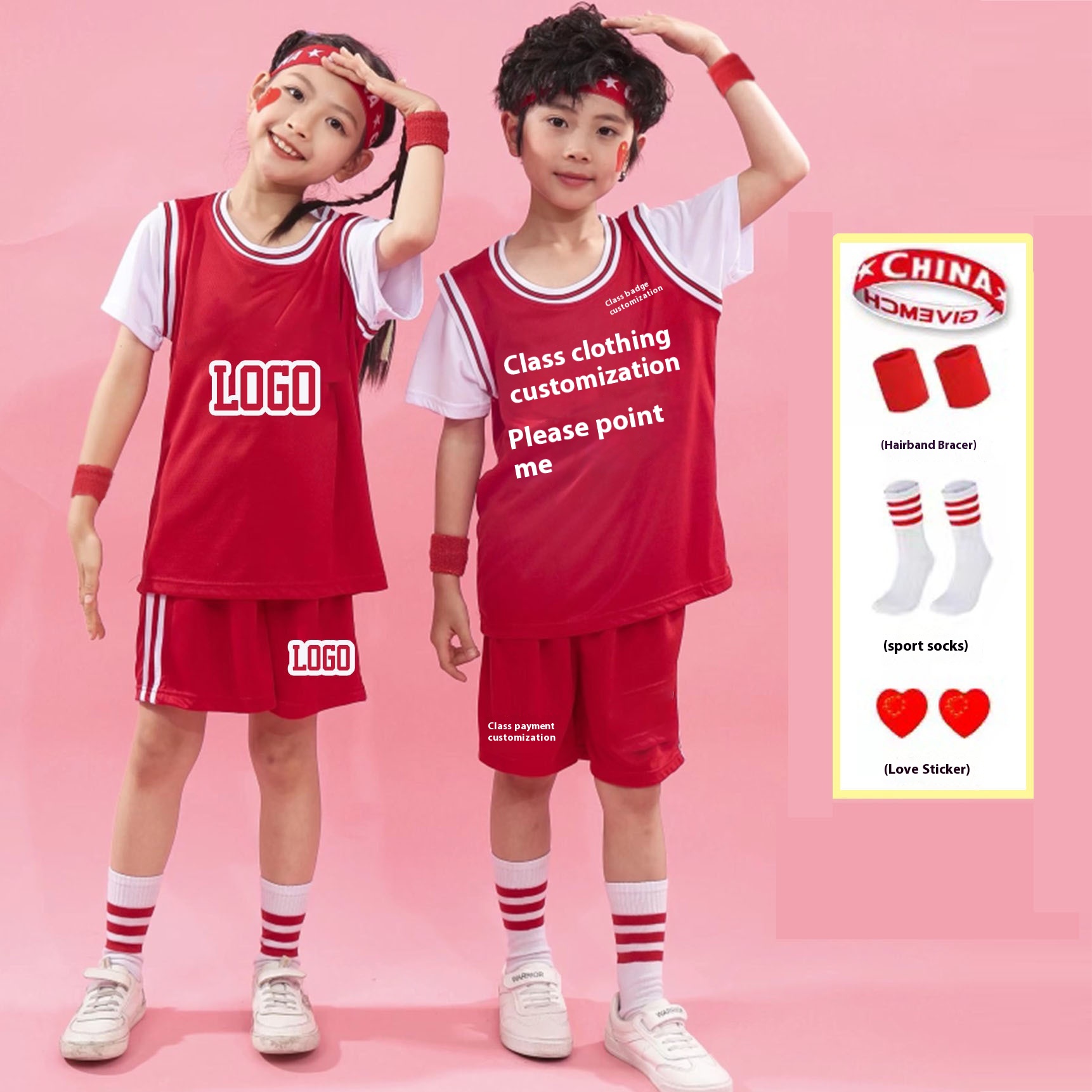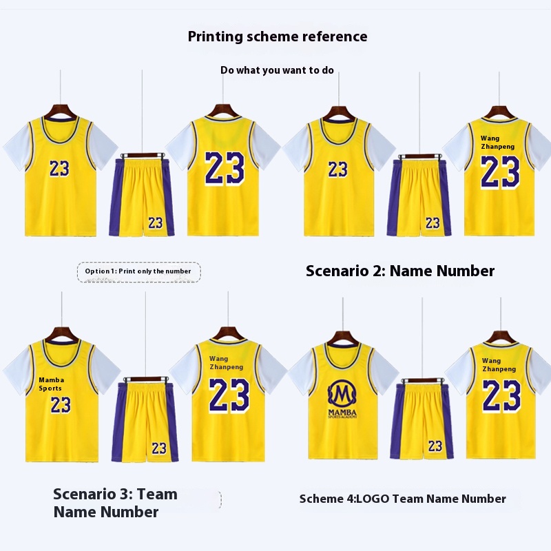 Basketball Uniforms Suits For Children Men And Women Printed Numbers Students Short-sleeved Quick-drying Fake Two-piece Training Suits Summer Basketball Uniforms