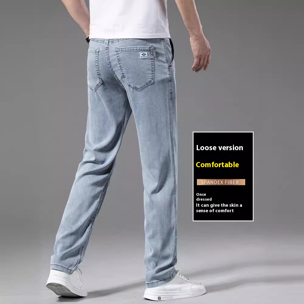 Spring And Summer Ice Silk Cool Jeans Men's Loose Straight Long Pants Xintang High-end Tencel Wide-leg Pants Thin