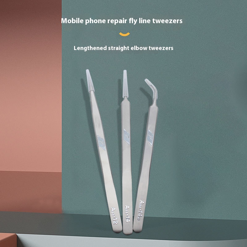 Extra Long Pointed Elbow Mobile Phone Repair Fingerprint Fly Line Tweezers Hardened Stainless Steel Handmade DIYTools