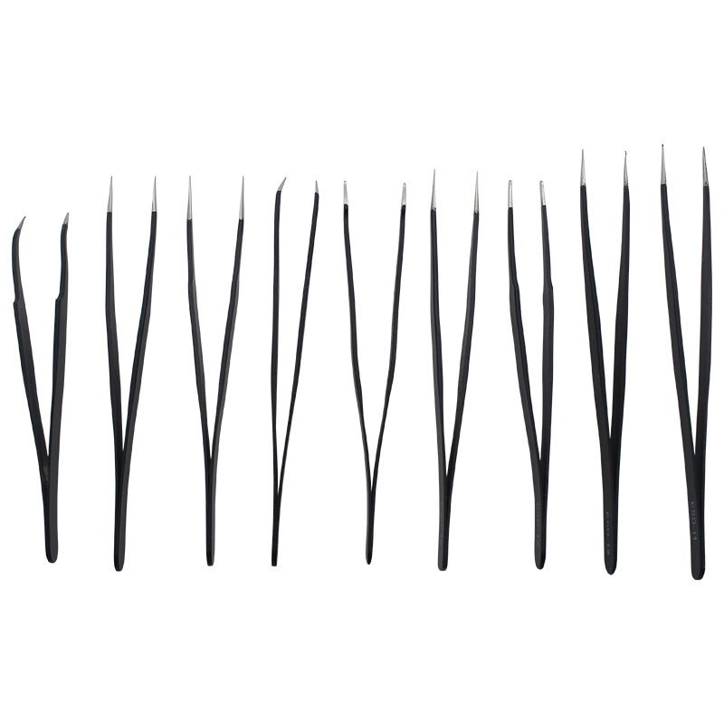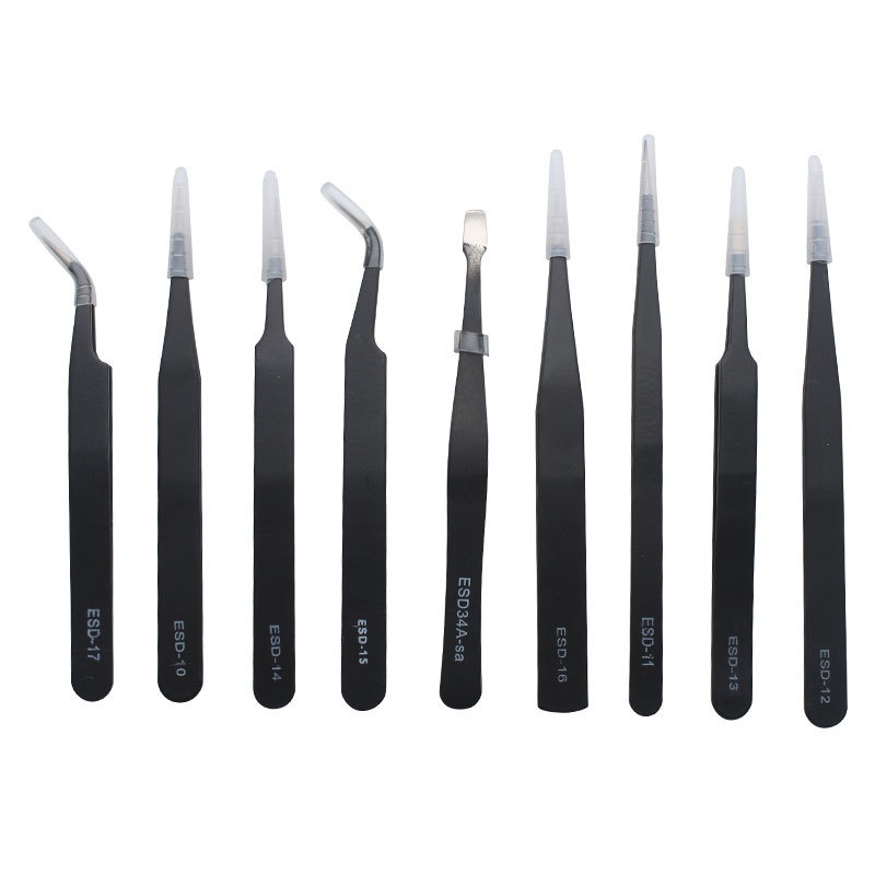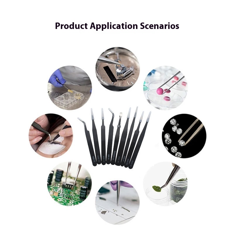 Canvas Bag9-piece Tweezers Stainless Steel Pointed Elbow Flat Head Clips Electronic Repair Household Tool Set