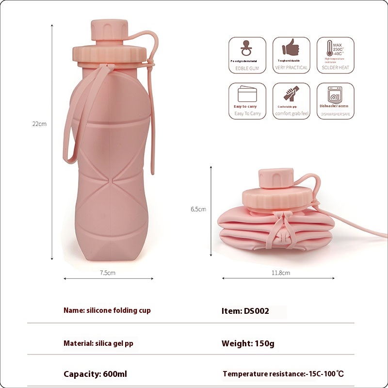 Silicone Diamond Foldable Water Cup Direct Hot-selling Sports Water Bottle Outdoor Travel Foldable Portable Compression Telescopic Bottle