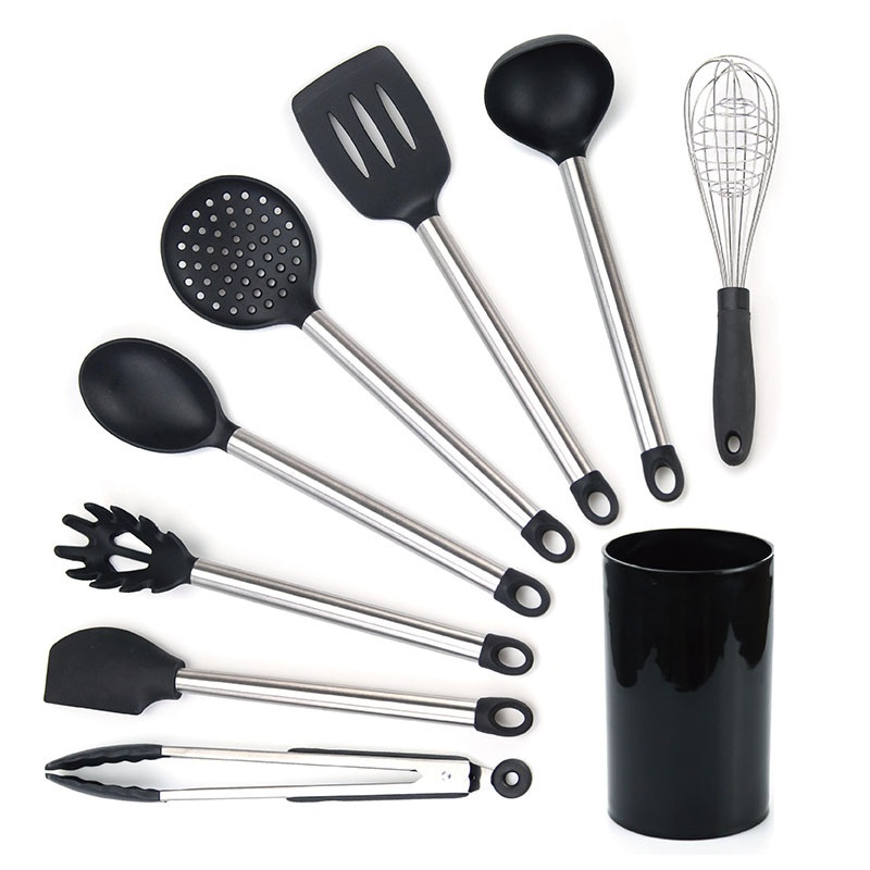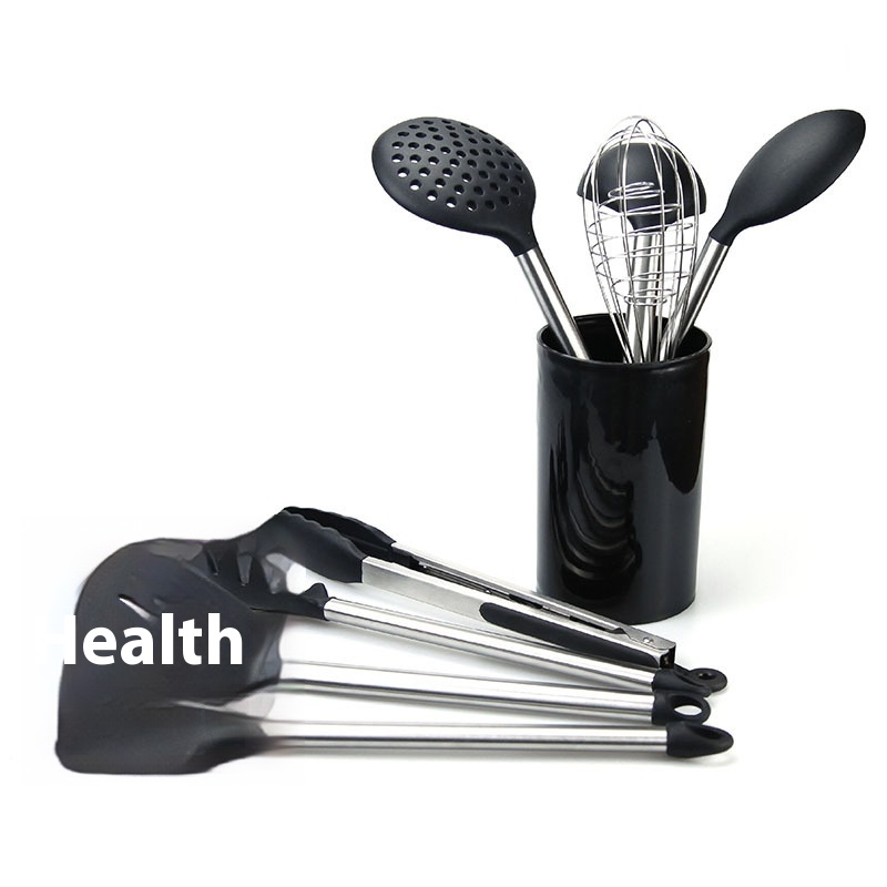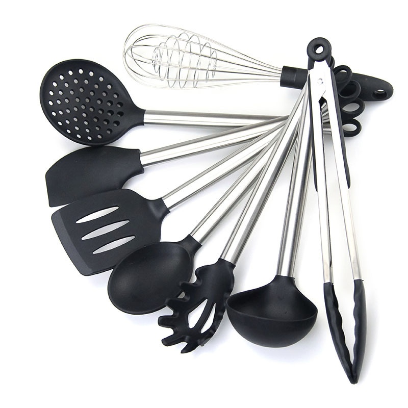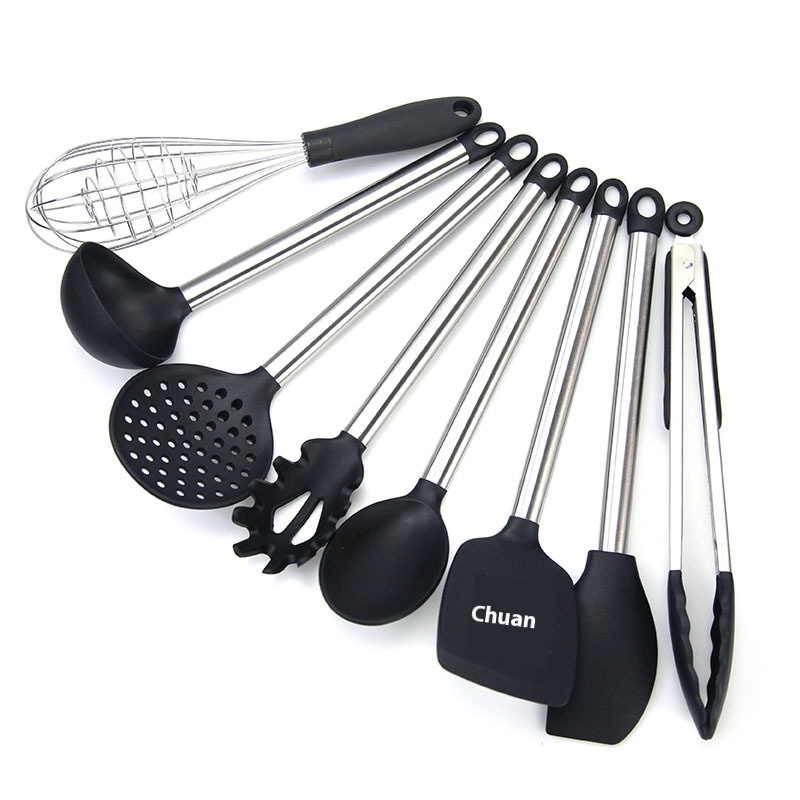 Ready-made Kitchen Utensils Stainless Steel Tube Handle Silicone Kitchen Utensils Non-stick Cooking Shovel Spoon8-piece Set Silicone Tail Ring