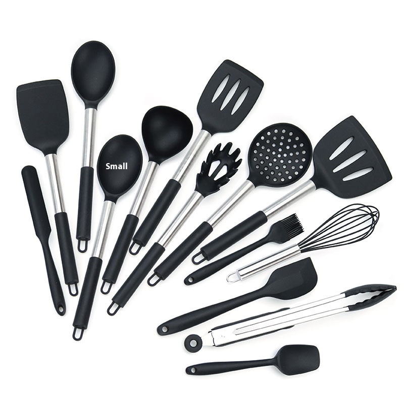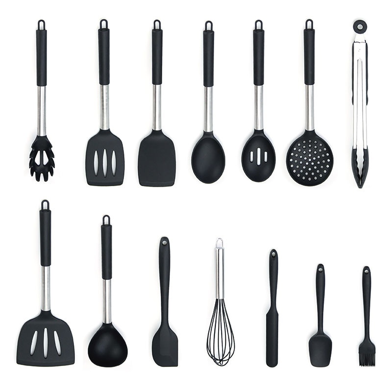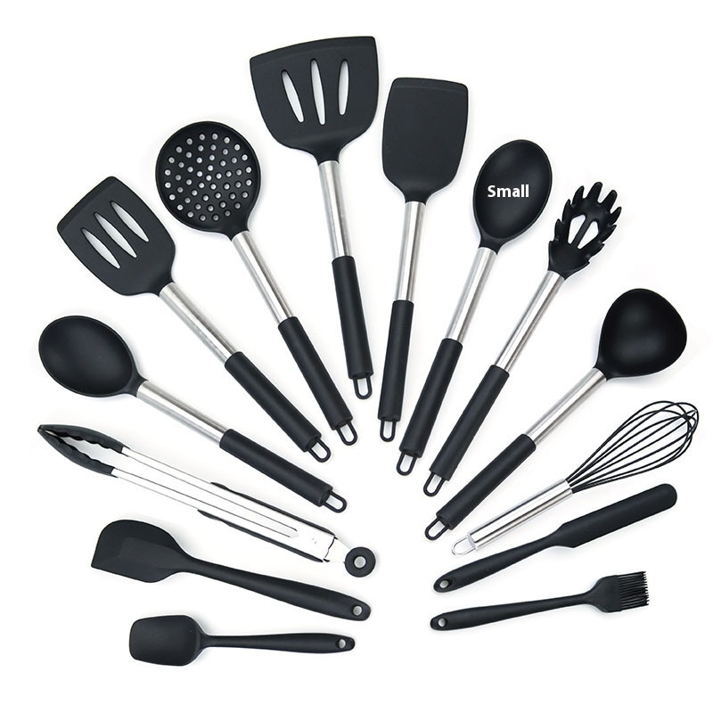 Direct Kitchen Supplies Set Cooking Non-stick Pot Spoon Shovel Tube Handle Stainless Steel Silicone Kitchen Utensils