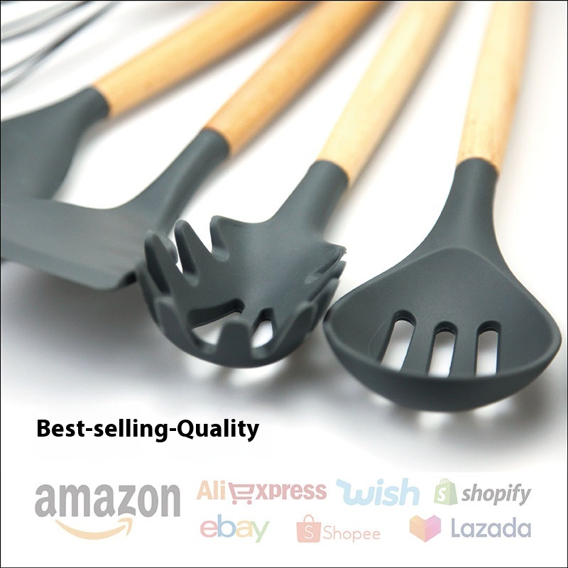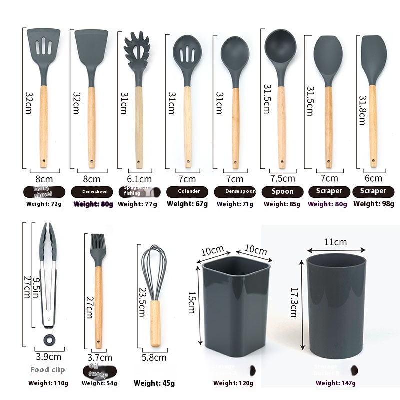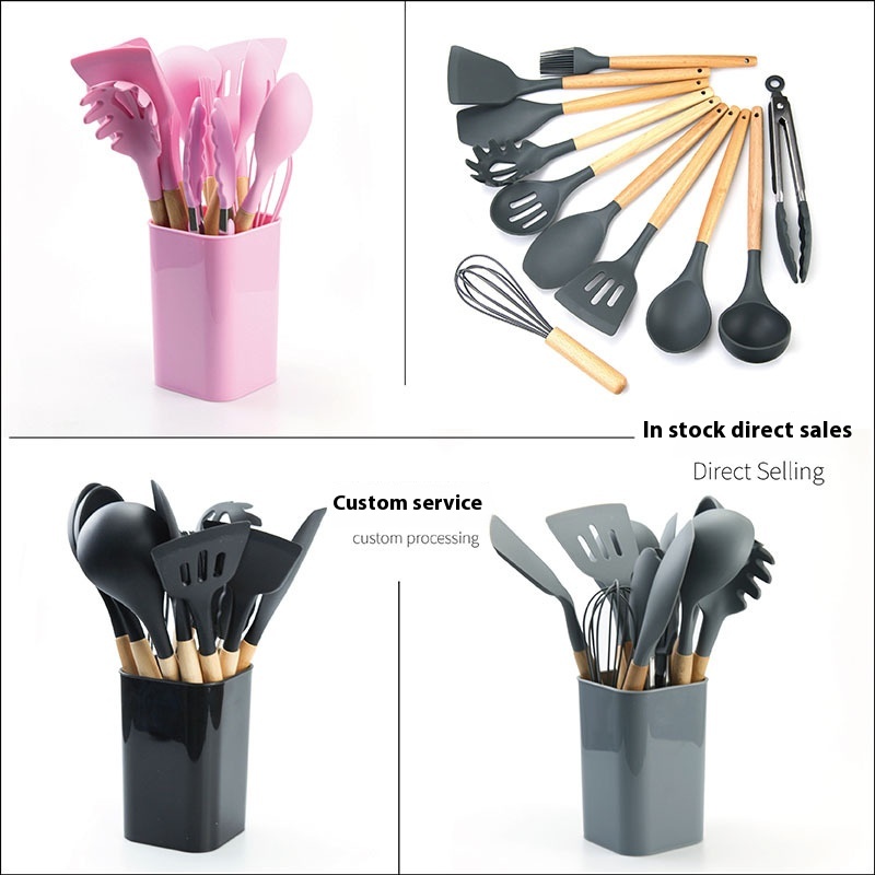 Direct Of Wooden Handle Silicone Kitchen Utensils Kitchen Cooking Utensils11-piece Set Non-stick Pan Special Silicone Spatula Spoon Set