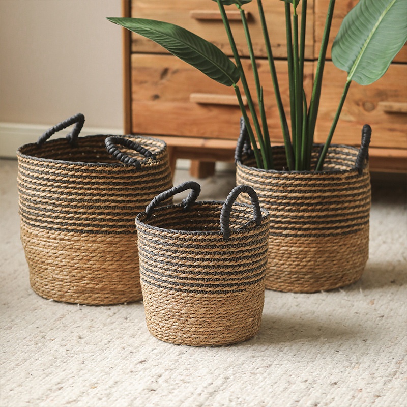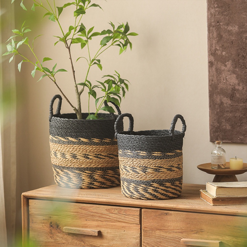 Handmade African Style Woven Flower Basket Double-eared Straw Basket Flower Pot Basket Floor Home Decoration Vase