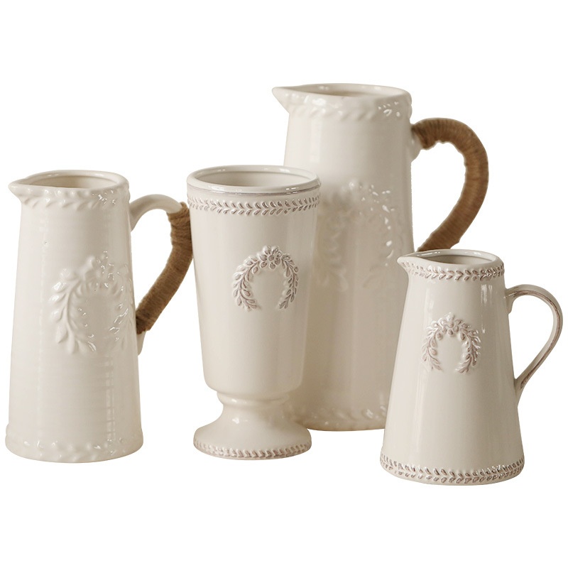 American Slott White Ceramic Vase Home Decoration Ornaments Hydroponic Real Flower Dining Table Vase