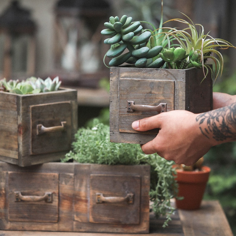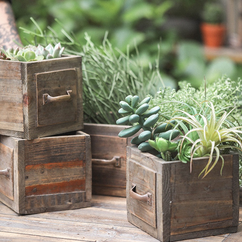 American Retro Pastoral Wooden Flower Pot Handmade Drawer-style Fir Flower Box Garden Succulent Flower Pot Ornaments