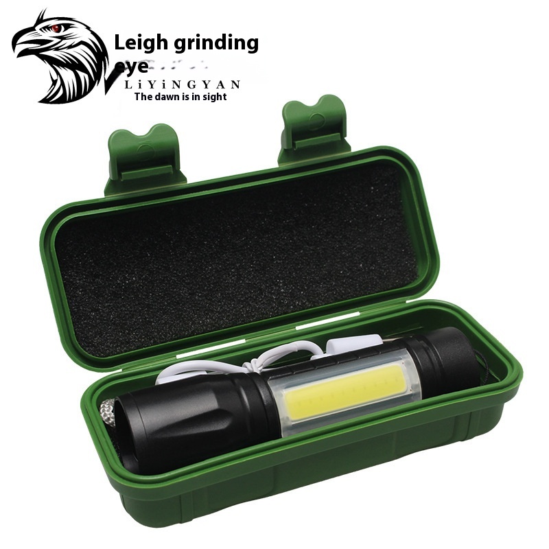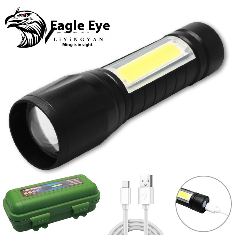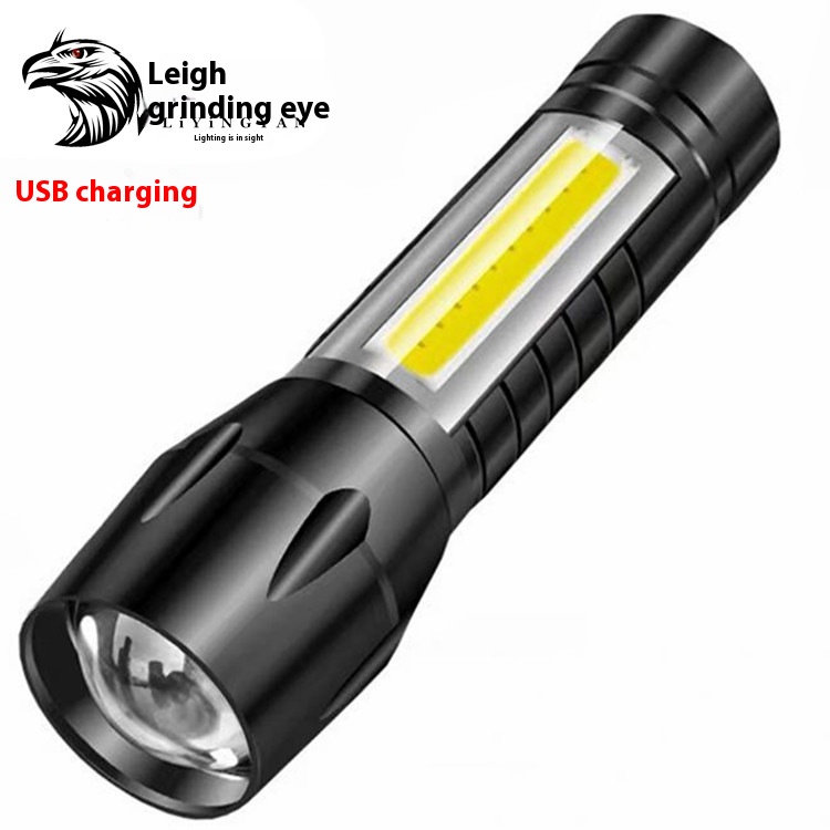 COBStrong Light Flashlight Aluminum Alloy USBCharging LEDMini Telescopic Zoom511 Gift Side Light