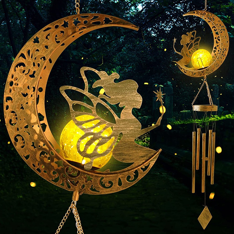 Solar Moon Wind Chime Lamp Iron Art Solar Lawn Floodlight Outdoor Garden Decoration Waterproof Garden Lamp