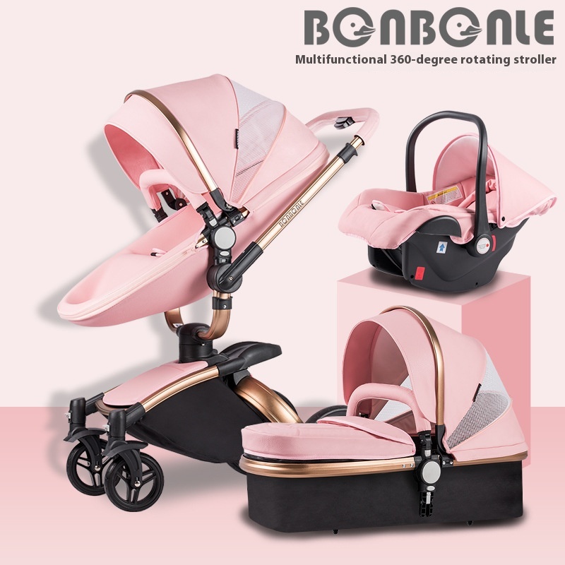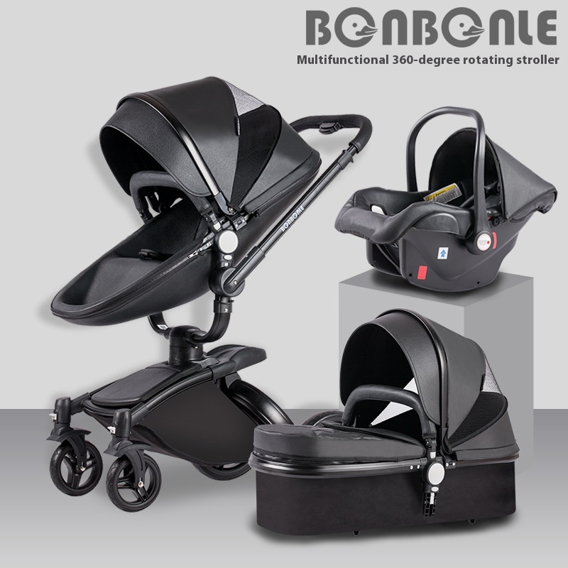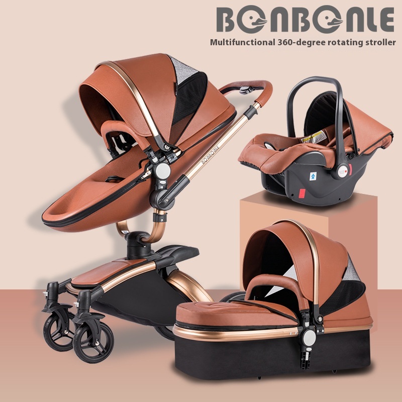 Baby Stroller Can Sit And Lie Down Leather Two-way High-view Baby Stroller360 Degree Rotationborn Baby Stroller Foldable Shock-absorbing