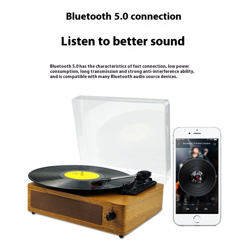 TT06 AWooden Retro Record Player Wireless Bluetooth Speaker Phonograph Home Vinyl Record Player