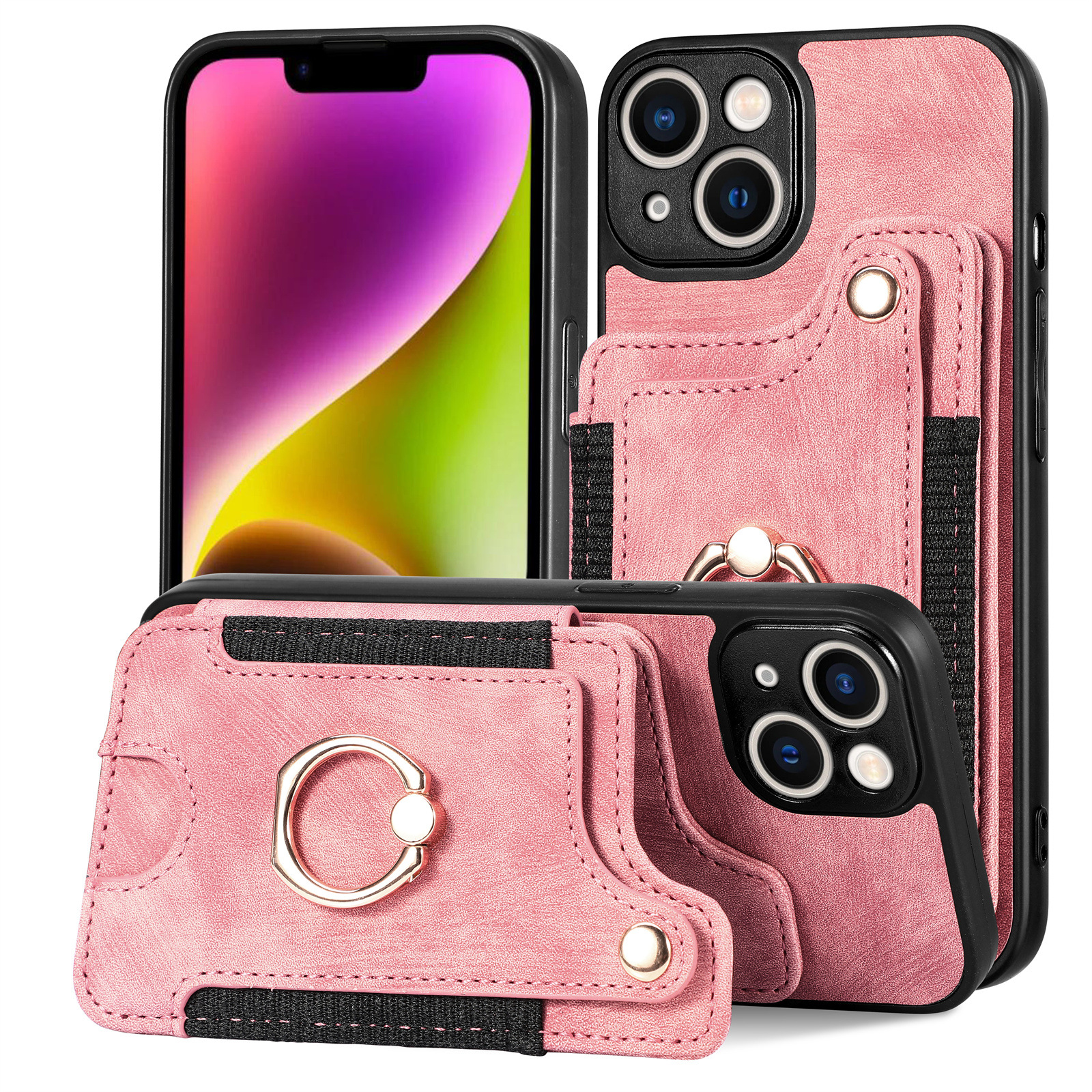 Suitable For IPhone15 Mobile Phone Leather Case RFIDAnti-theft Brush Ring Buckle Lanyard Multi-function Card Holder Apple Mobile Phone