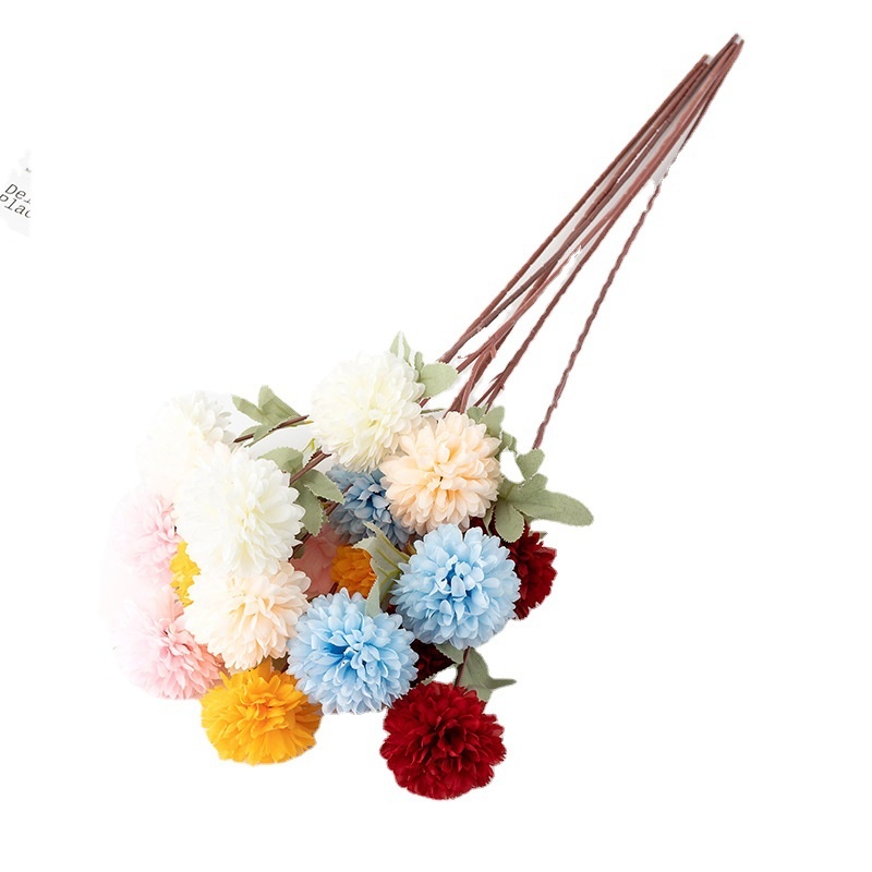 Artificial Flower Silk Cloth Artificial Plant Wedding Scene Layout Artificial Flower Three-headed Chrysanthemum Wedding Decoration Materials