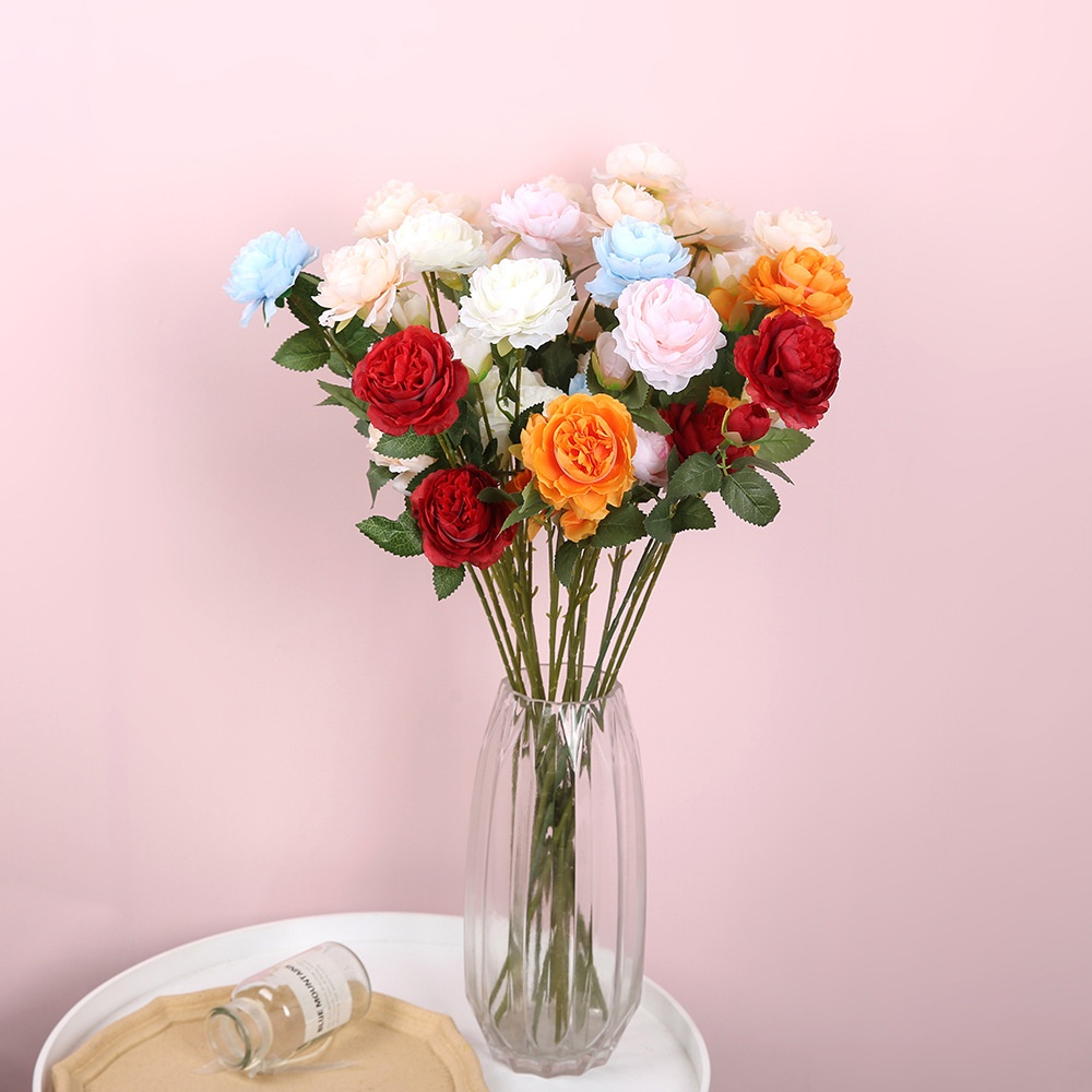 Mochu Simulated Flower Three-headed Peony Home Wedding Decoration Western Rose Living Room Plant European Peony