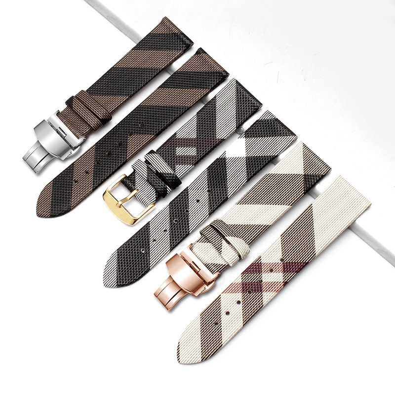 P U Surface Cowhide Bottom Watch Strap Substitute Babaoli14/16/18/20/22mm Plaid Pattern Wristband