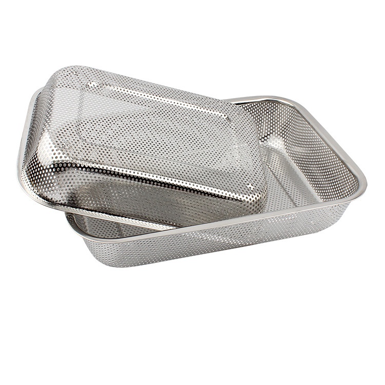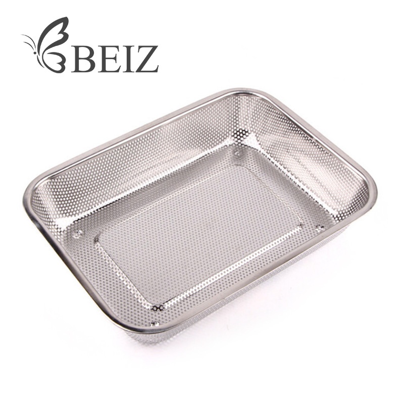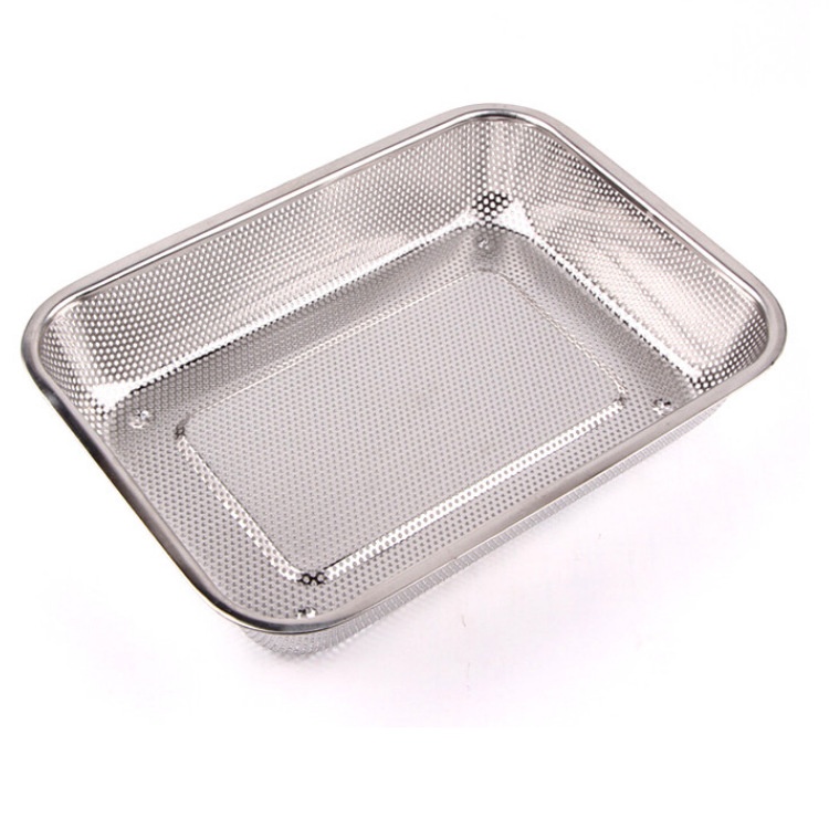 Household Creative Stainless Steel Thick Rectangular Drain Basket Kitchen Vegetable Basket Vegetable Washing Basket