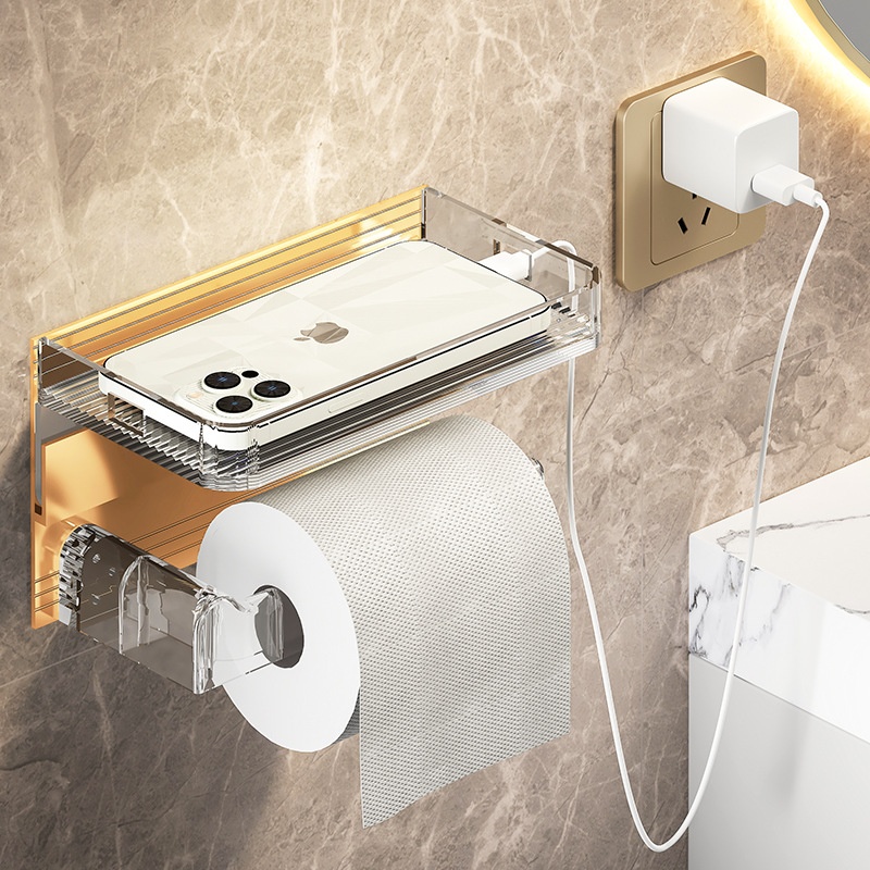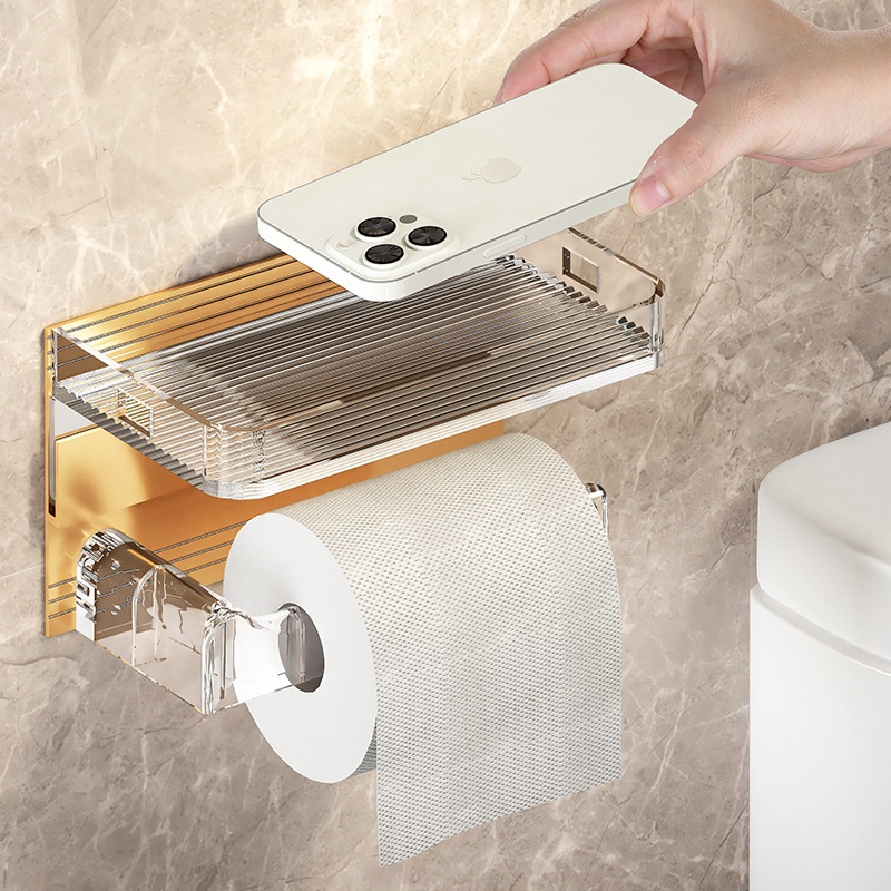 Toilet Paper Holder,Acrylic Toilet Paper Holder,Space Aluminum Mobile Phone Storage Rack,Nail-free Paper Holder,Paper Towel Holder