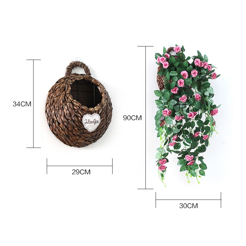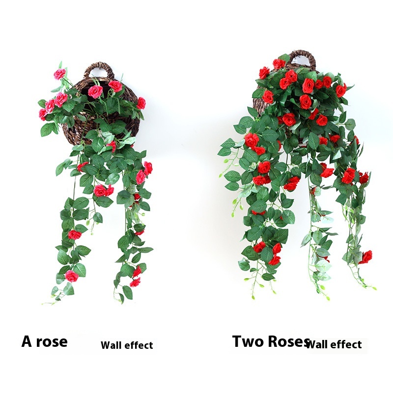 Simulation Rose Wall Hanging Flower Vine Home Decoration Ornaments Fake Flower Hanging Flower Living Room Wall Hanging Silk Cloth Simulation Flower Basket