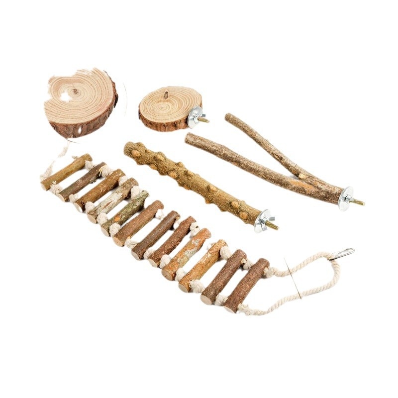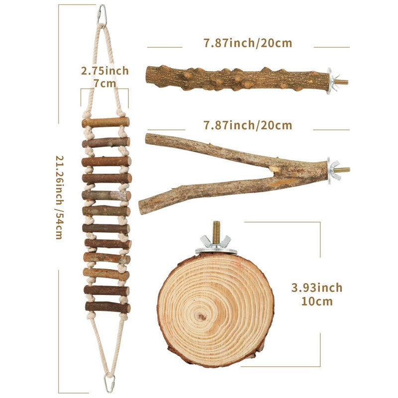 Parrot Toy Set,Prickly Ash Wood Stand Stick,Swing Platform,Soft Ladder,Bird Supplies,Special Bird Toys