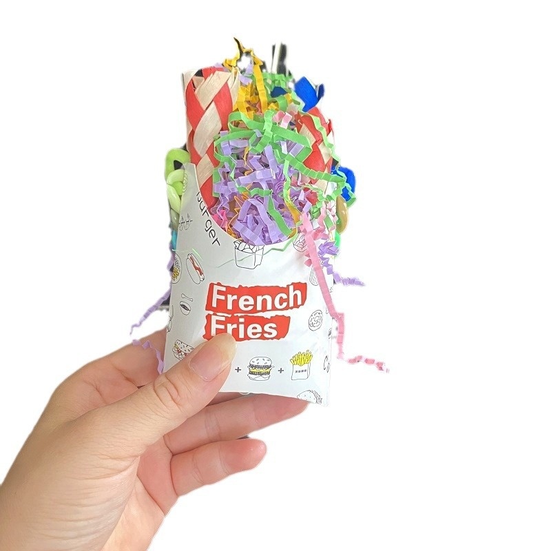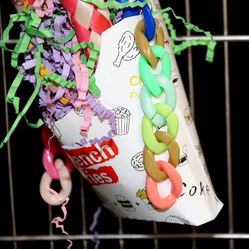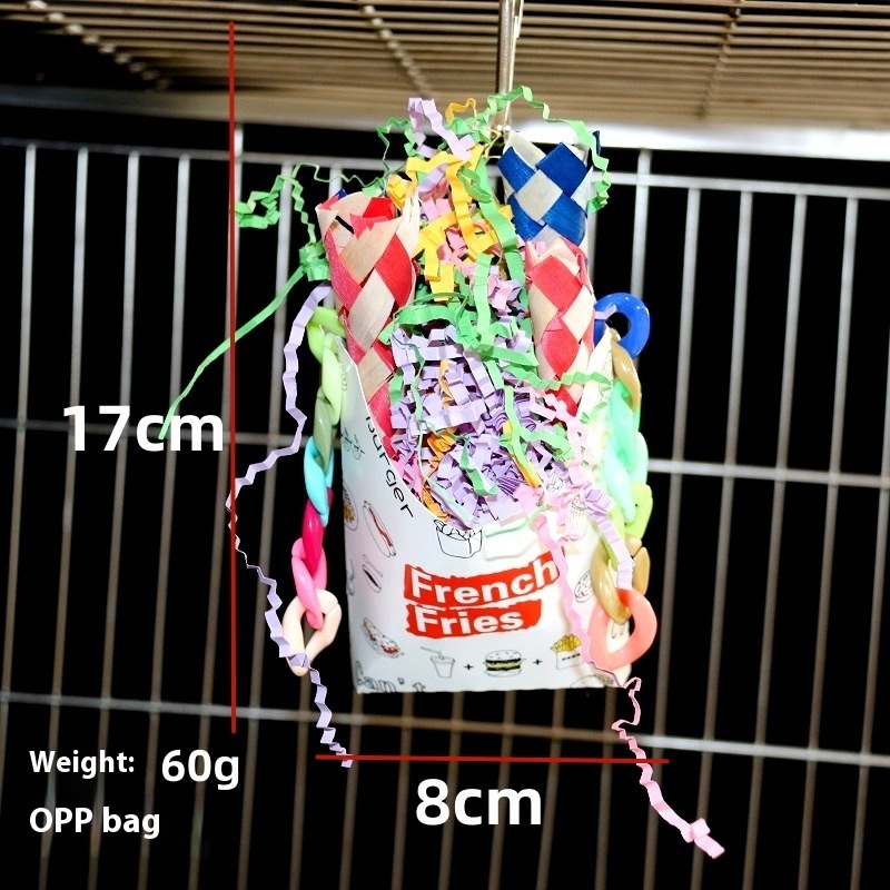 SBird Toys Chewing Small Backpack Imitation French Fries Bag Confetti Bird Cage Pendant