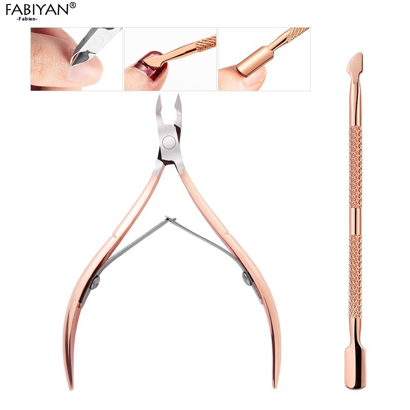 Stainless Steel Cuticle Scissors Set Nail Scissors Cuticle Pliers Double Head Steel Push Nail Clippers Trimming Tools