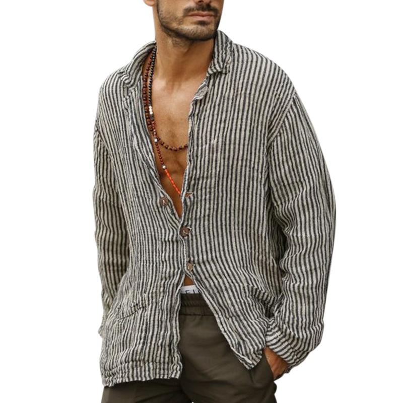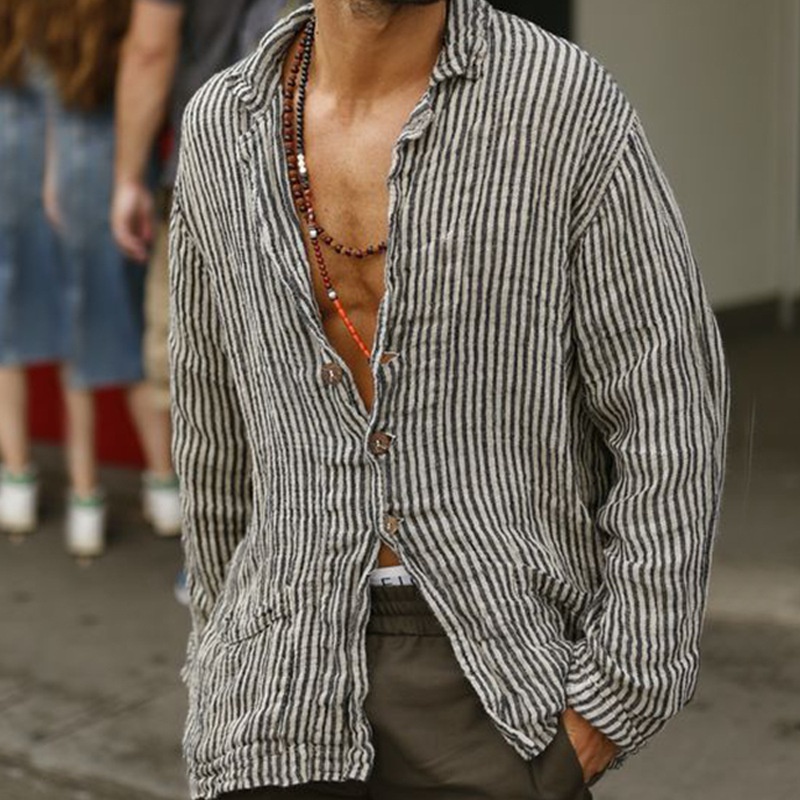 Foreign Trade Speed Mail European And Americany Striped Print Casual Temperament Shirt Men