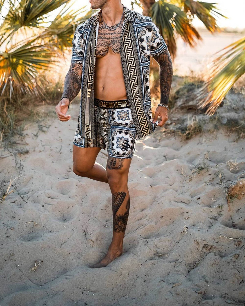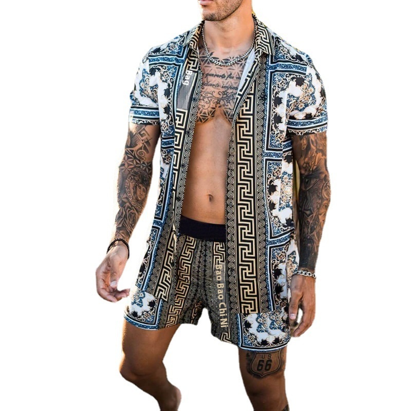 [Ready Stock]Spring European And American Printed Shirt Quick Dry Casual Suit Shorts Men